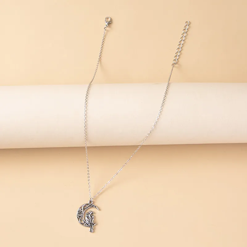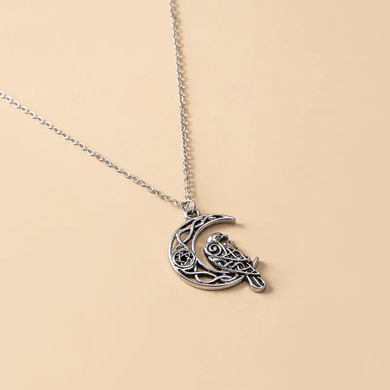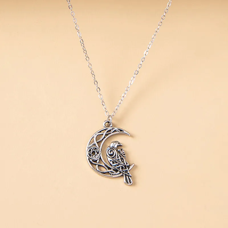 Nordic Viking Hollow Moon Odin Crow Pendant Necklaces