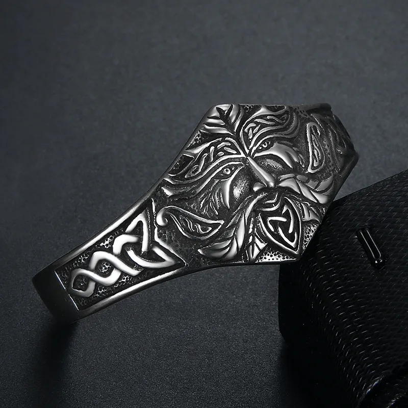 Nordic Vintage Viking Warrior Head Stainless Steel Bracelet