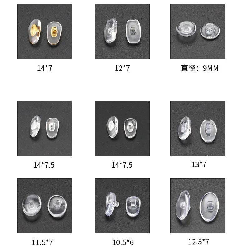 Including: 15 types of lock type, card type, core insert type pvc nose pads each 10 pairs, a box set a total of 150 pairs, 300.