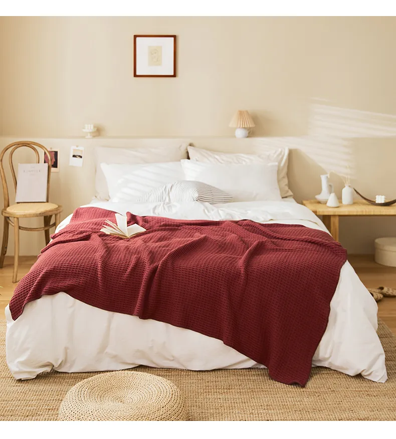 Crafted with a textured waffle weave, this blanket not only looks elegant but also enhances breathability for a cozy and airy feel.