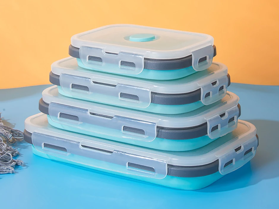 Product name: PP bagged silicone folding lunch box square 4-piece set