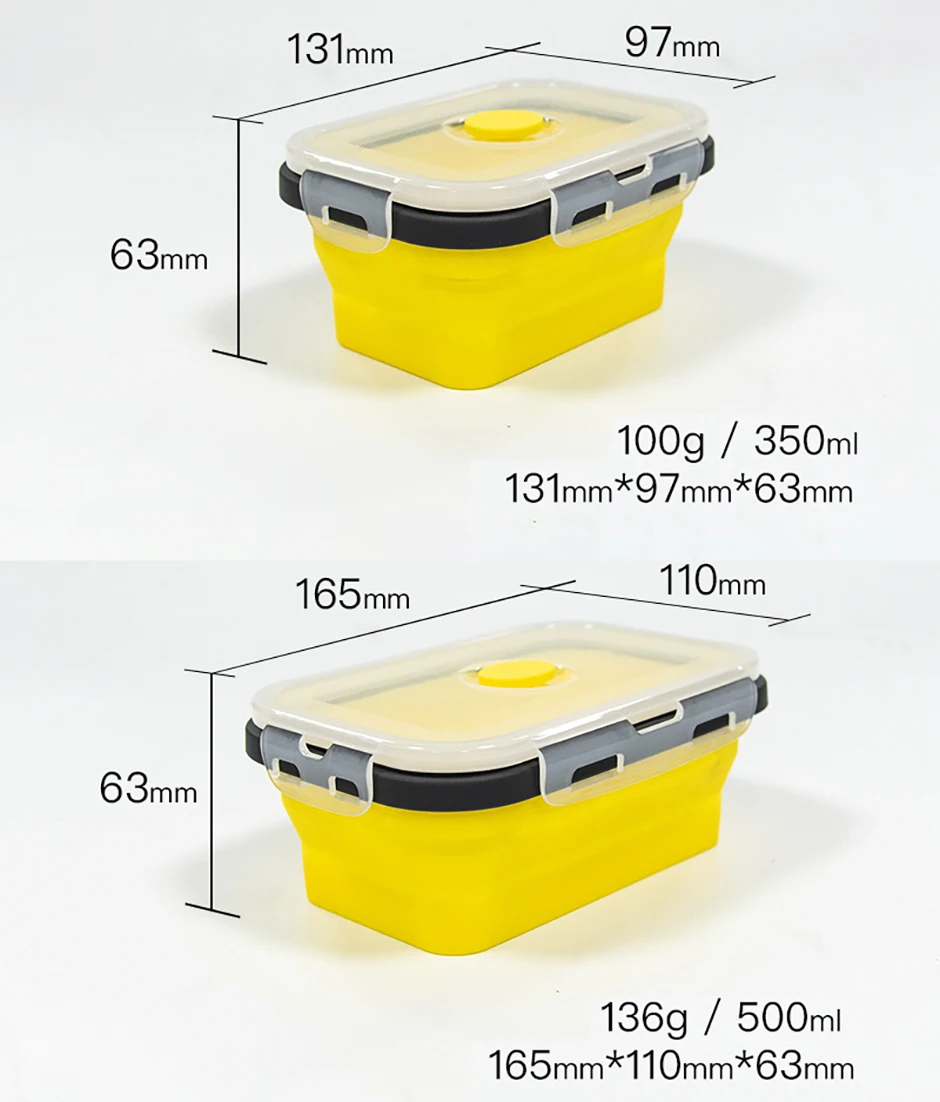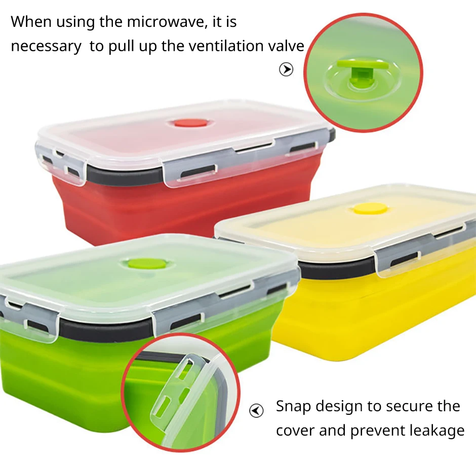 Selling point: Dual color lunch box with 5 colors available for easy contact with food. Silicone gel is easy to clean, fold, and store without occupying any space