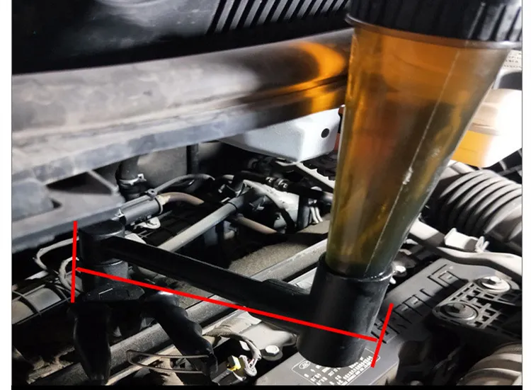 The funnel is equipped with an adjustable interface that allows it to fit different sizes of oil filter openings and oil drain pans. This