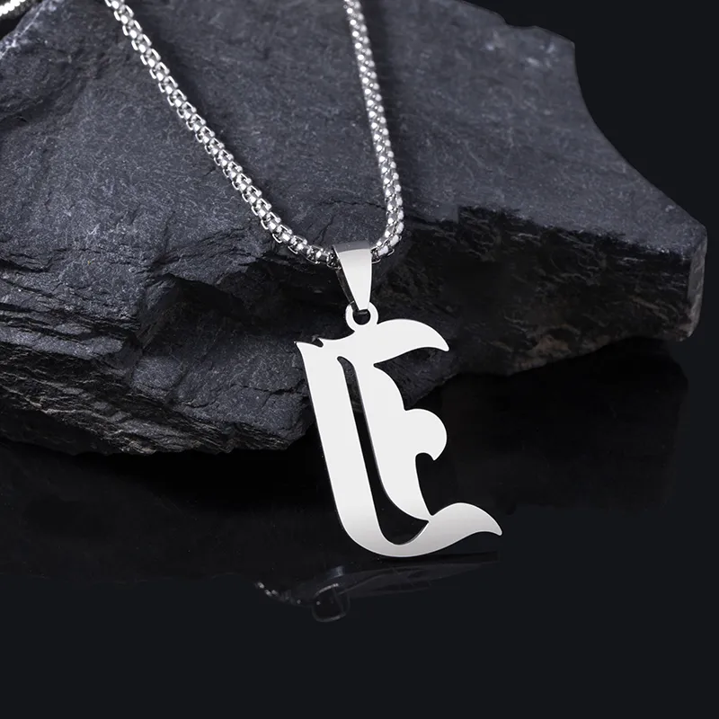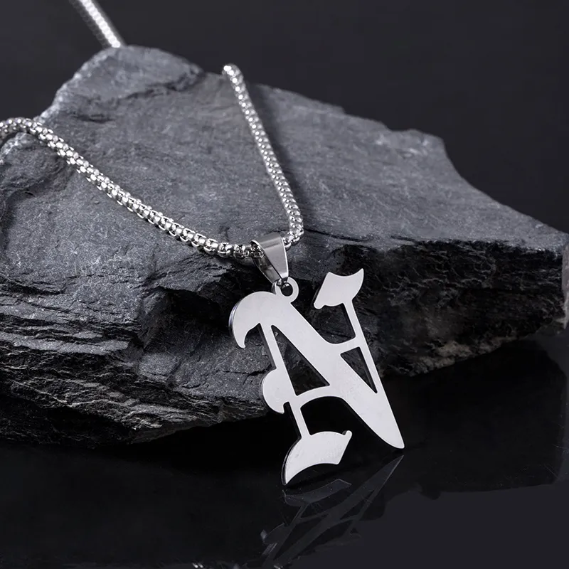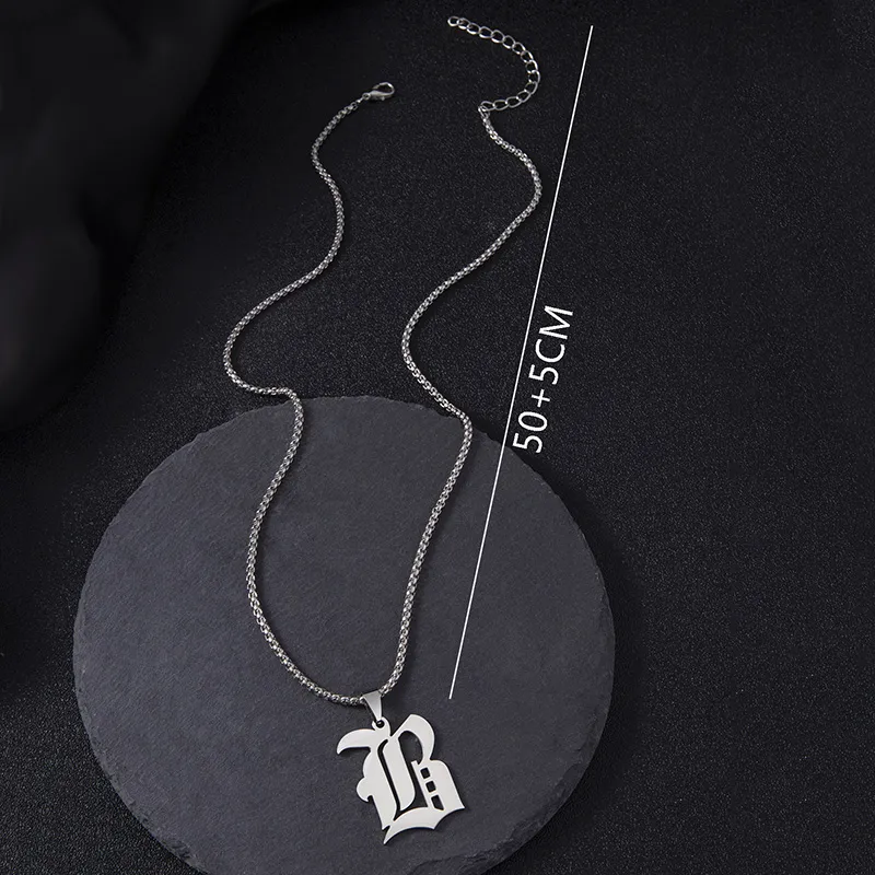 Classic Old English Font: The Old English font gives the necklace a vintage, gothic-inspired feel, making it stand out from