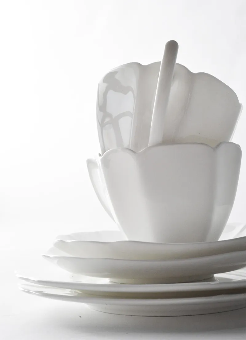 Color classification: White (a cup and a dish)