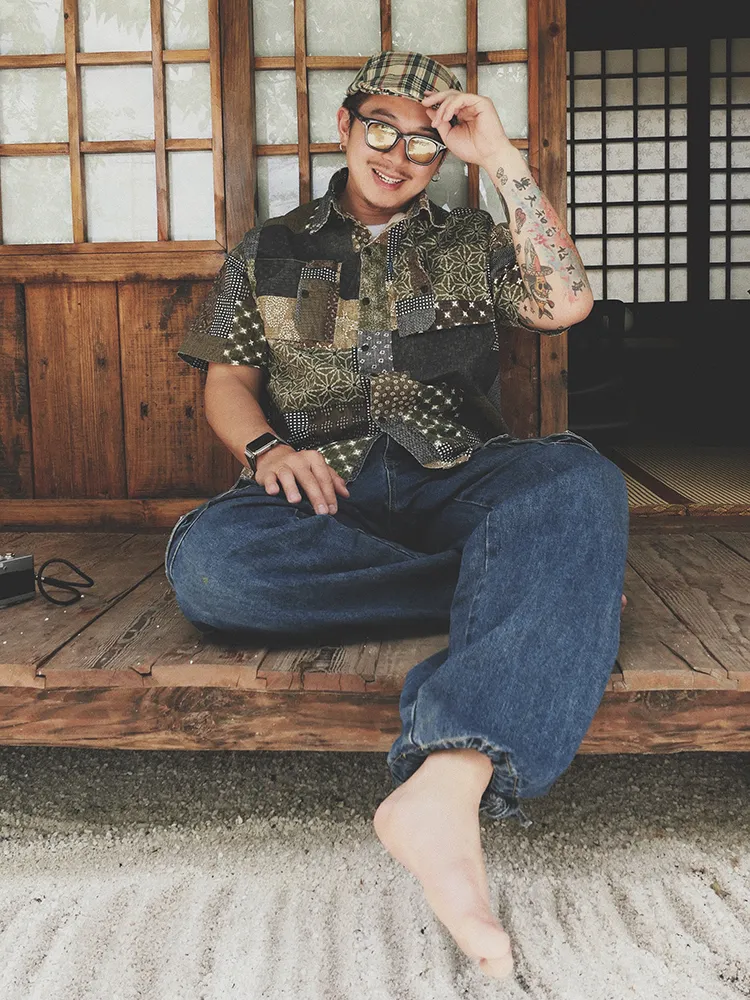 Original Green Coffee Color Matching Cashew Flower Shirt Ami Kaji Shirt Summer Shirt Men'S Short-Sleeved Japanese Shirts For Men And Women