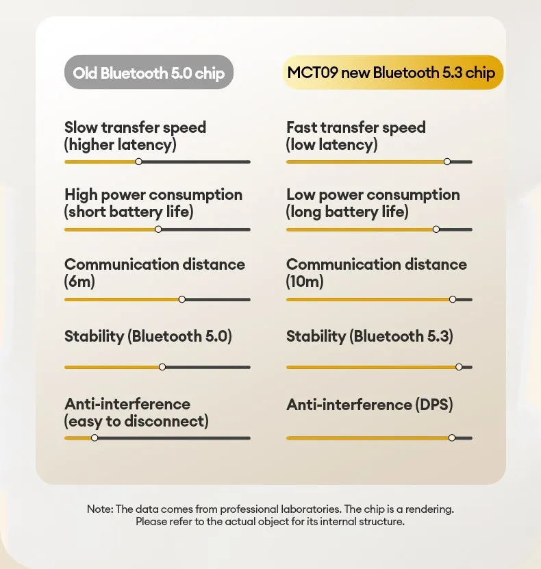 - Bluetooth V5.3: Equipped with the latest Bluetooth technology, the MCT09 offers stable and efficient connectivity with minimal latency. Enjoy seamless pairing with your devices and a strong signal range.