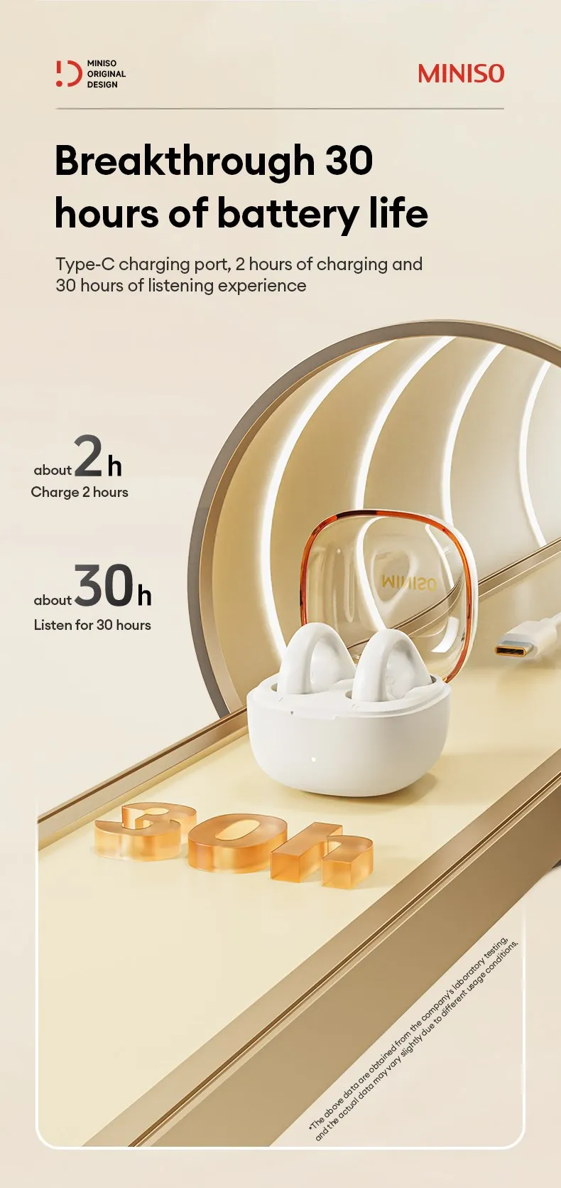 Type-C charging port, 2 hours of charging and30 hours of listening experience