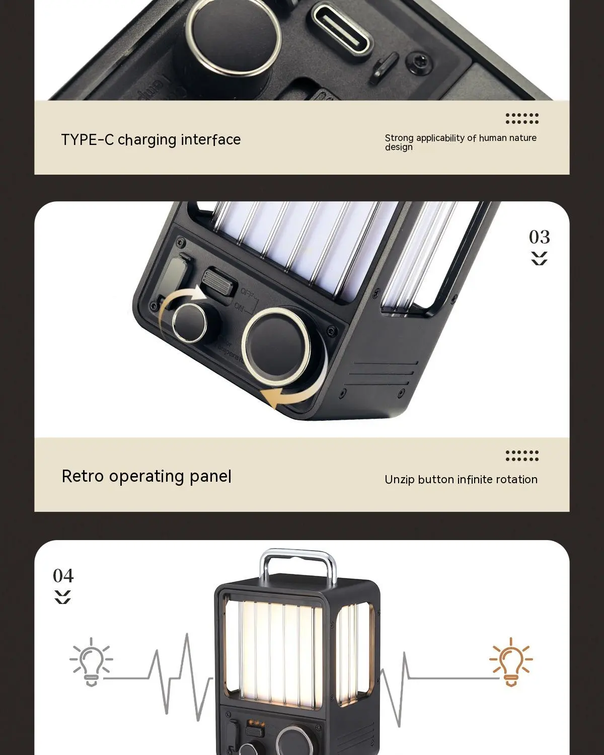 Retro Aesthetic: The vintage-style design adds a classic touch to your campsite, combining function with charm.