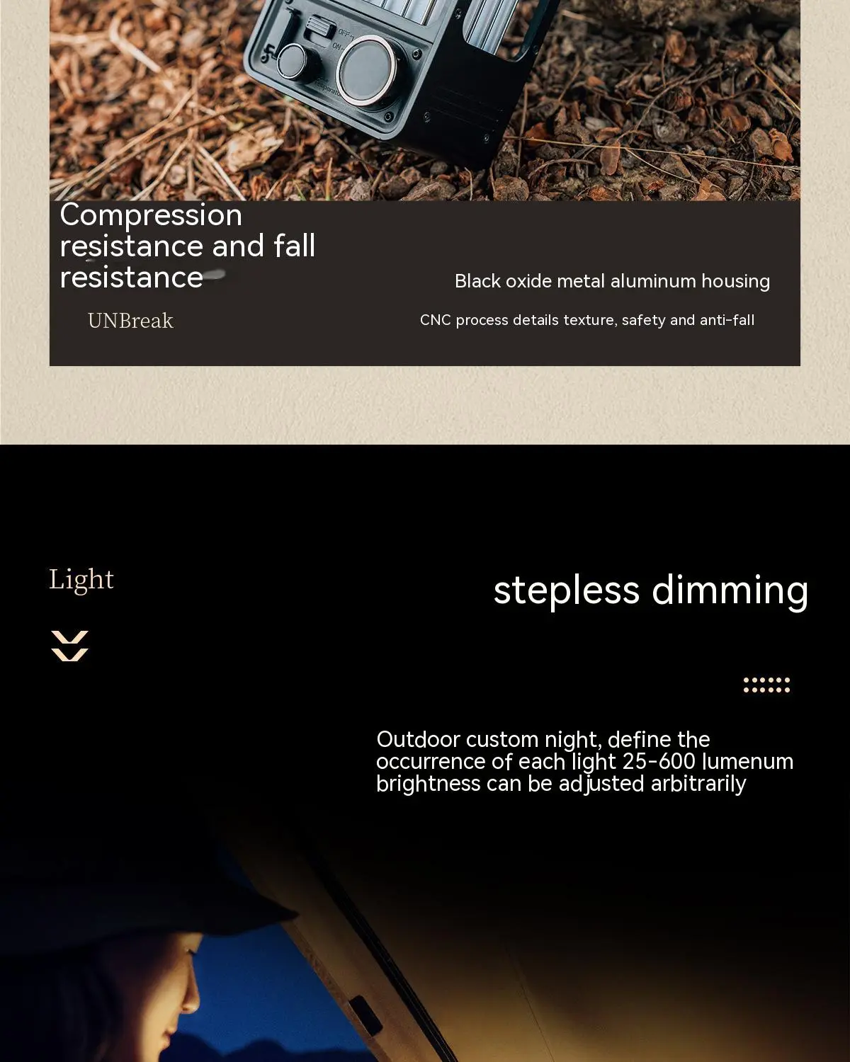 High-Brightness LED Light: Delivers bright, clear light for better visibility and a safer camping experience.