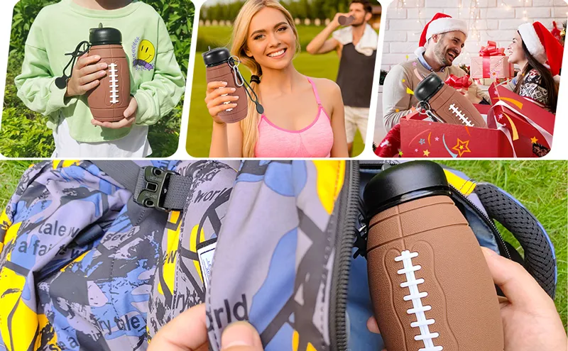 3.【Original Design】Overall water bottle anti-collision design, brown rugby ball-shaped water bottle, a sense of creativity.