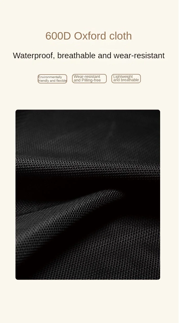 5.600D Oxford Fabric: Breathable, waterproof, durable.