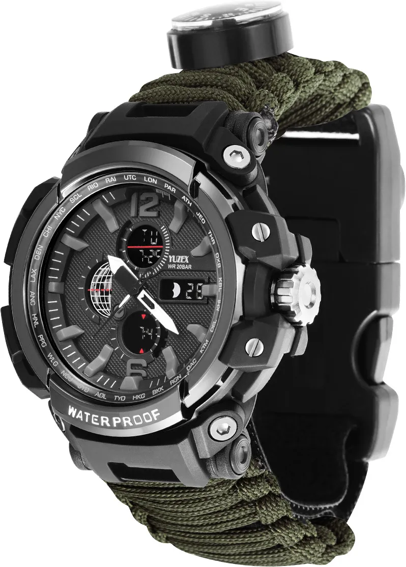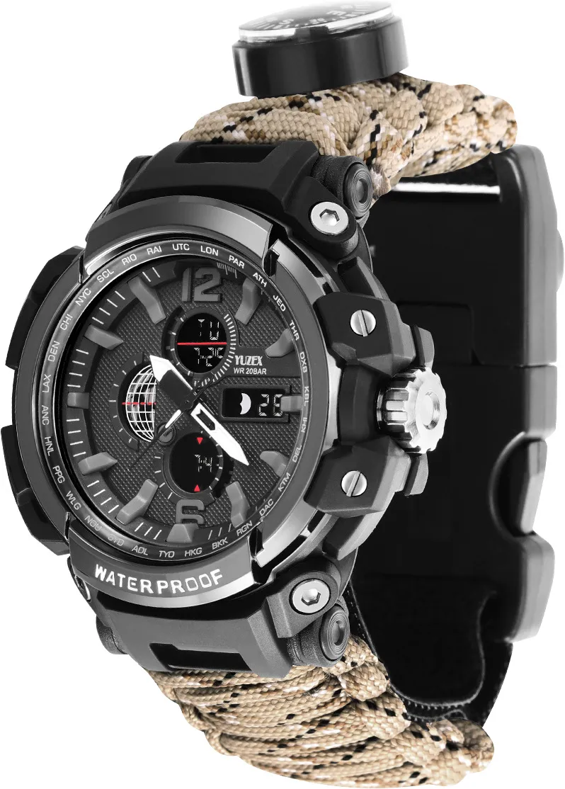 [product name]: wilderness survival outdoor mountaineering travel depth waterproof watch multi-function led umbrella rope watch 7