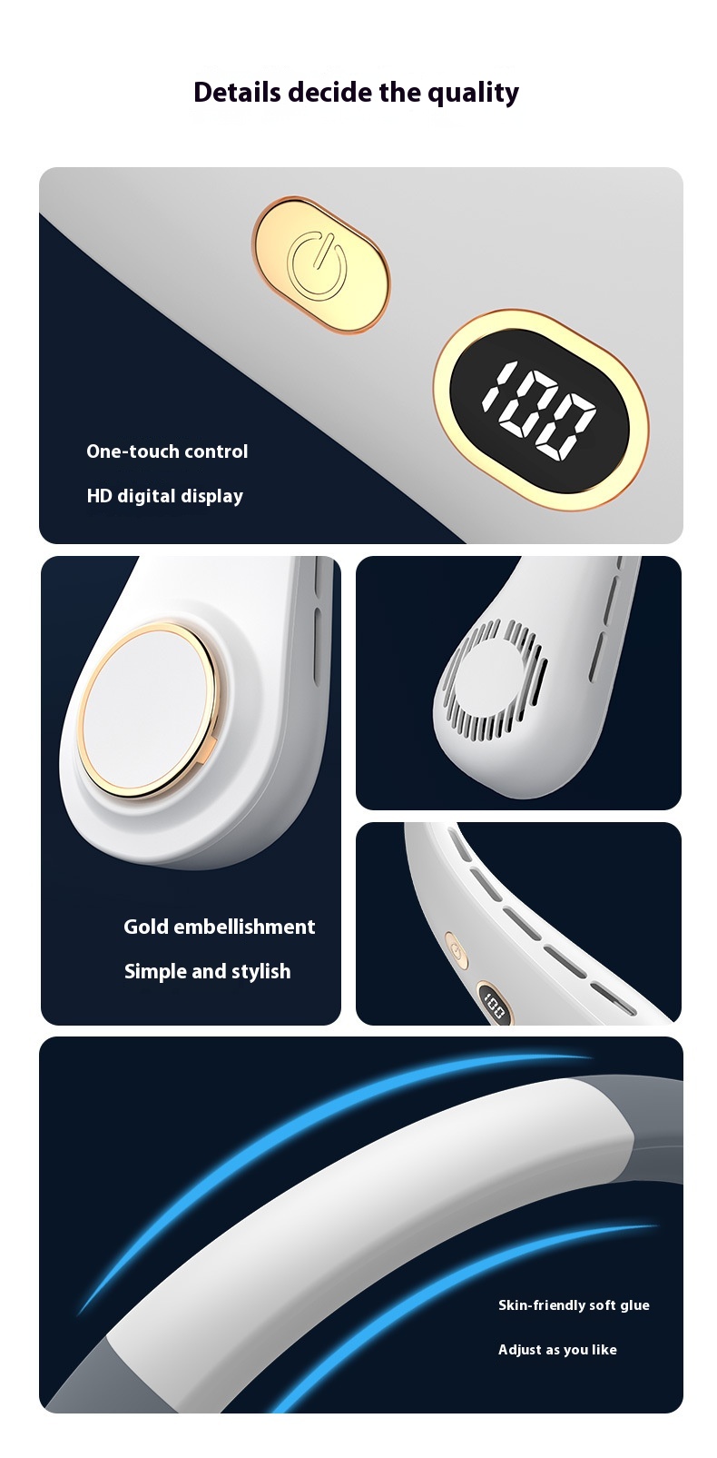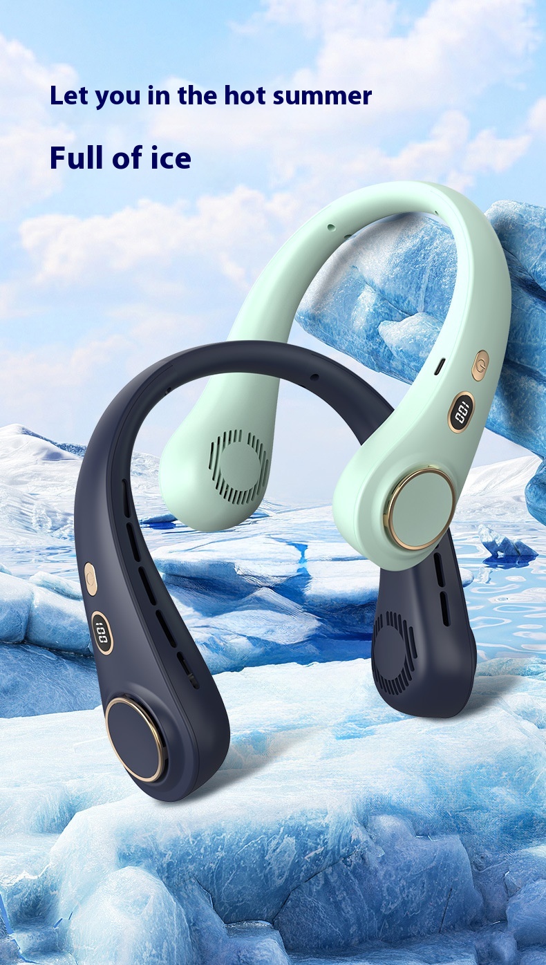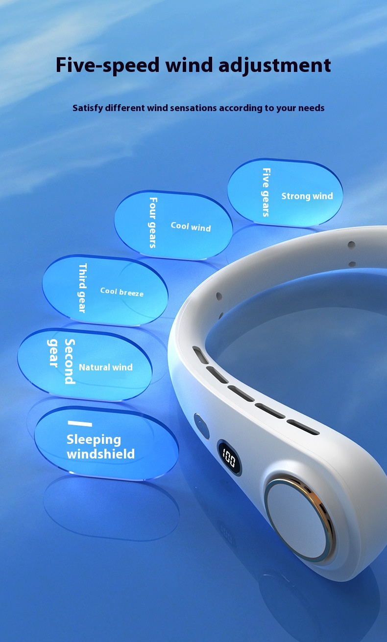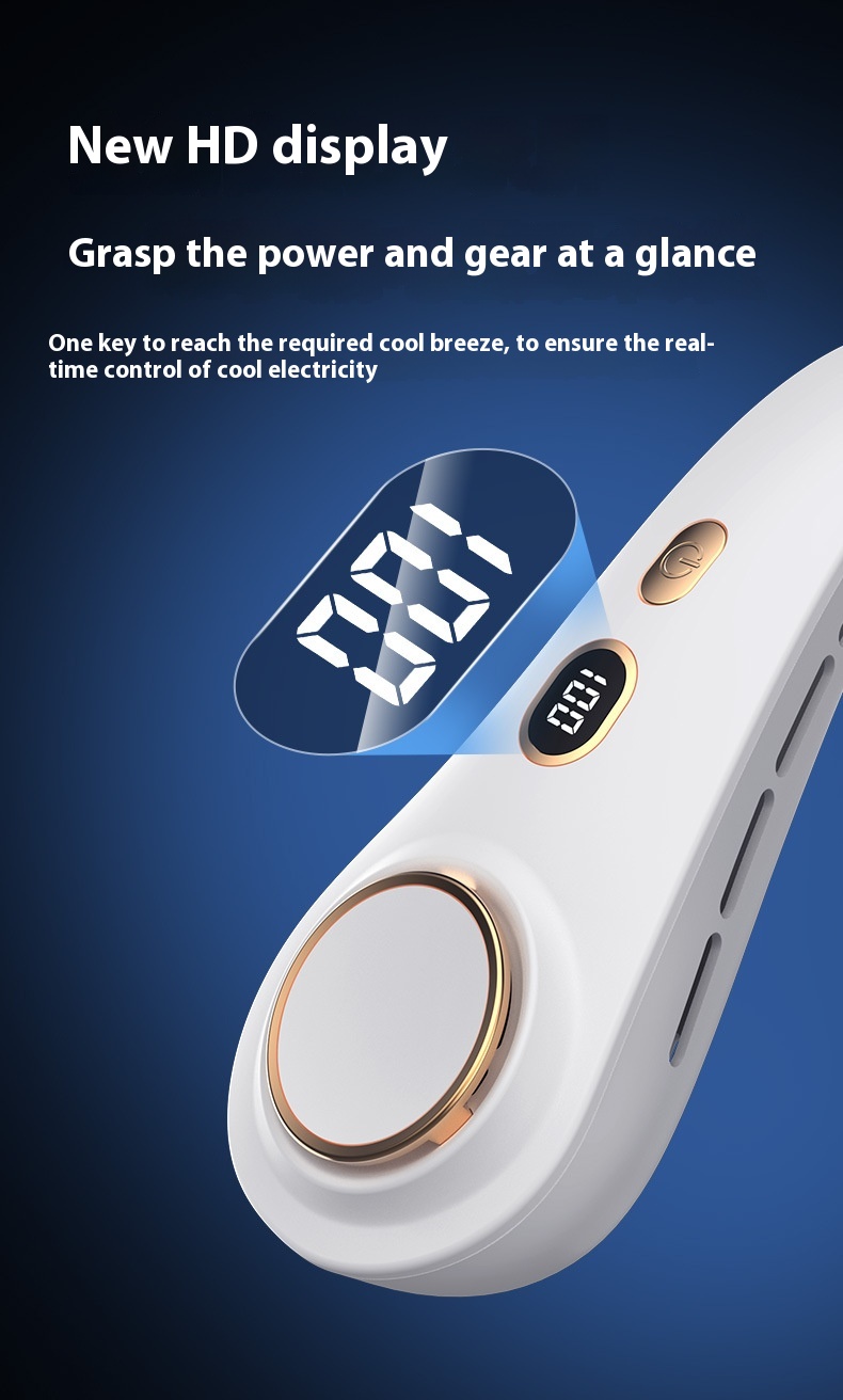 sleek digital display, this fan allows easy control of speed and settings. Its lightweight and ergonomic halter design ensures a comfortable