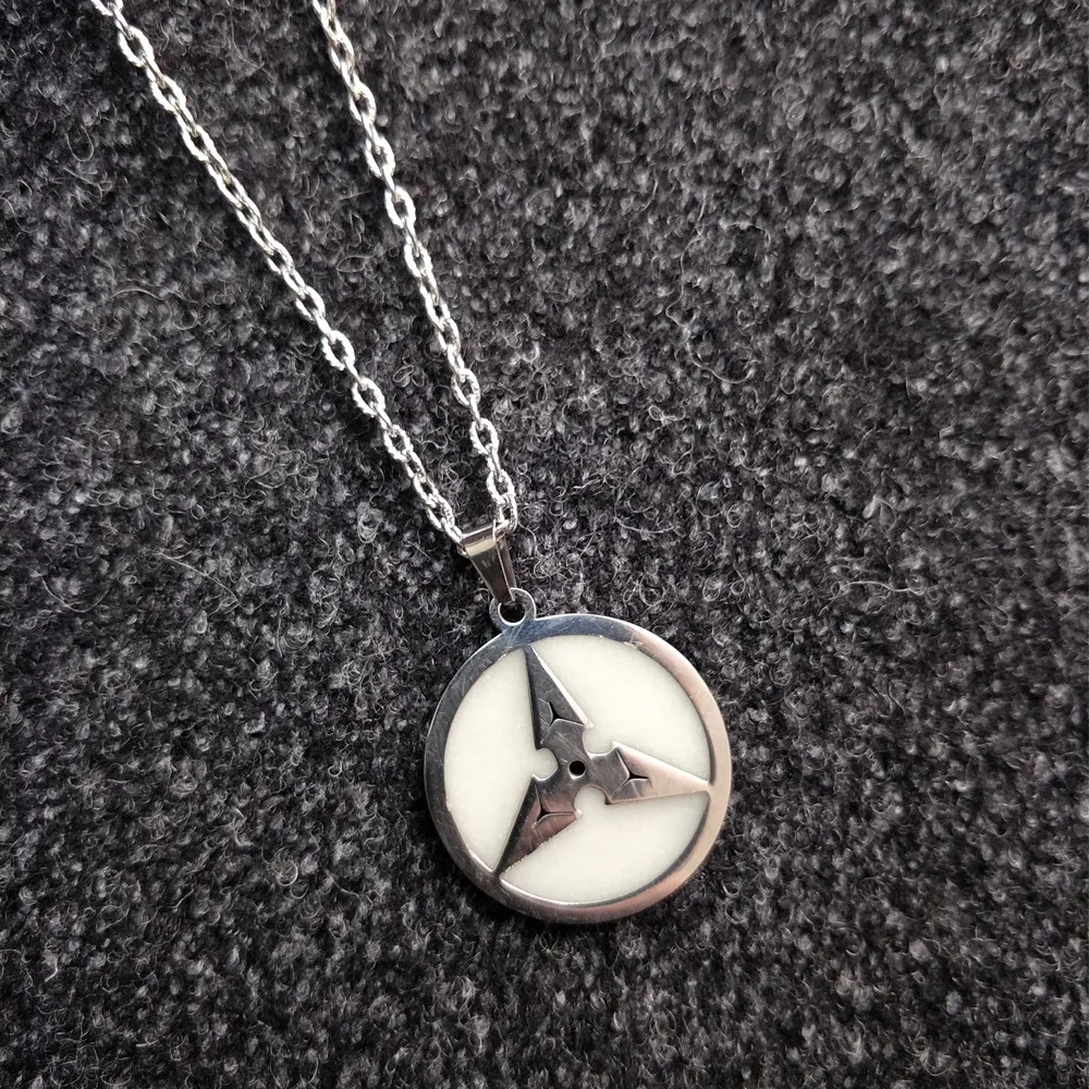 The pendant is made from high-quality stainless steel, known for its durability, shine, and tarnish-resistant properties. The pendant also features a luminous element that gives it a glow in low light.
