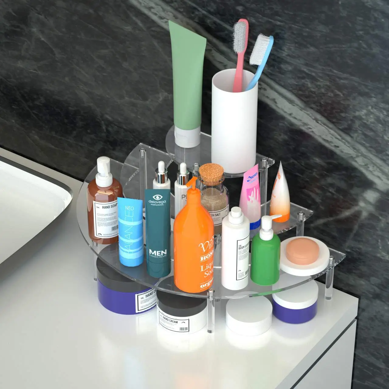 Place the display in a location where it’s visible and easily accessible, such as a retail counter, vanity, or bathroom shelf.
