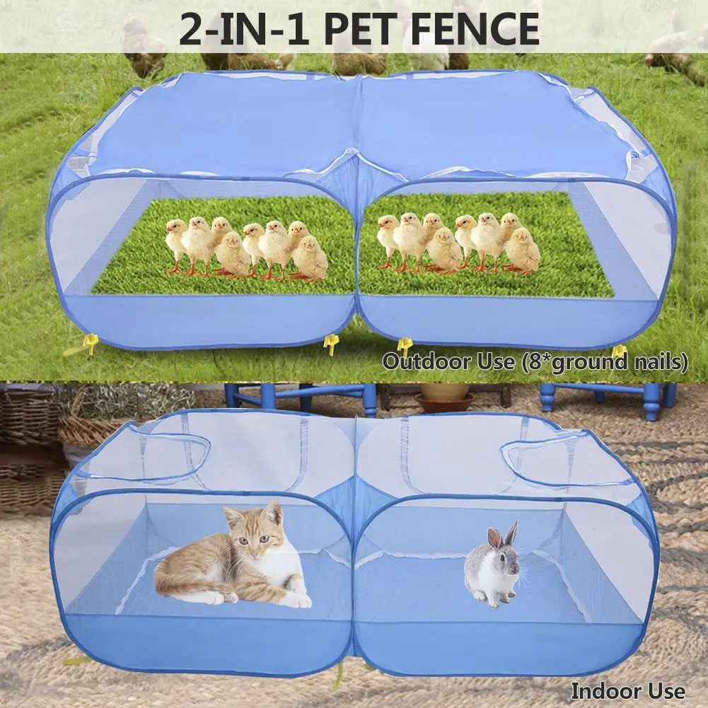 2-in-1 function: suitable for indoor / outdoor; Suitable for chicken, duck, rabbit, cat and dog activities