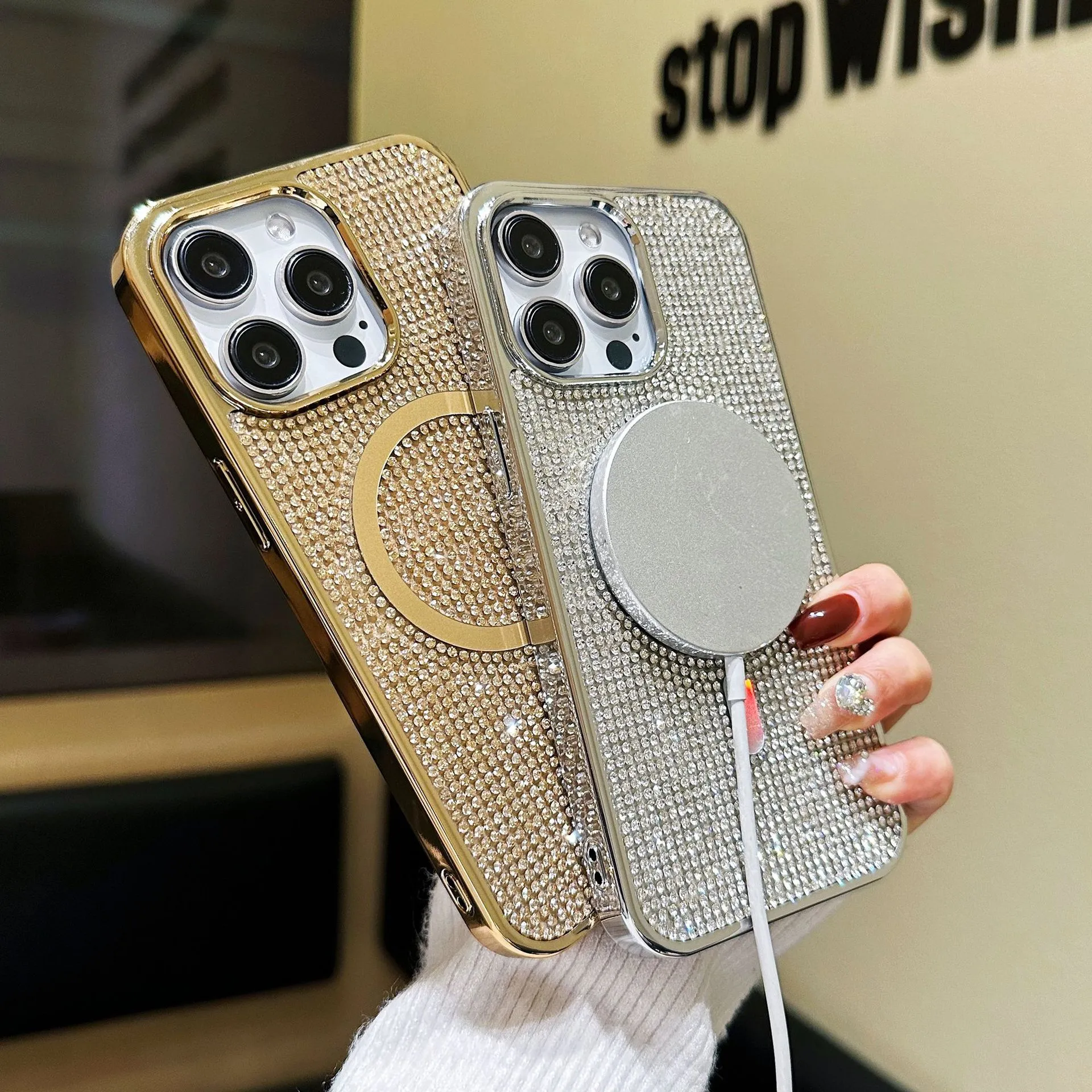 The shiny electroplating frame adds a touch of sophistication, while the embedded rhinestones sparkle beautifully under any light, making your phone stand out in every occasion. Despite its luxurious look, the case maintains a slim and comfortable grip, ensuring both fashion and practicality.