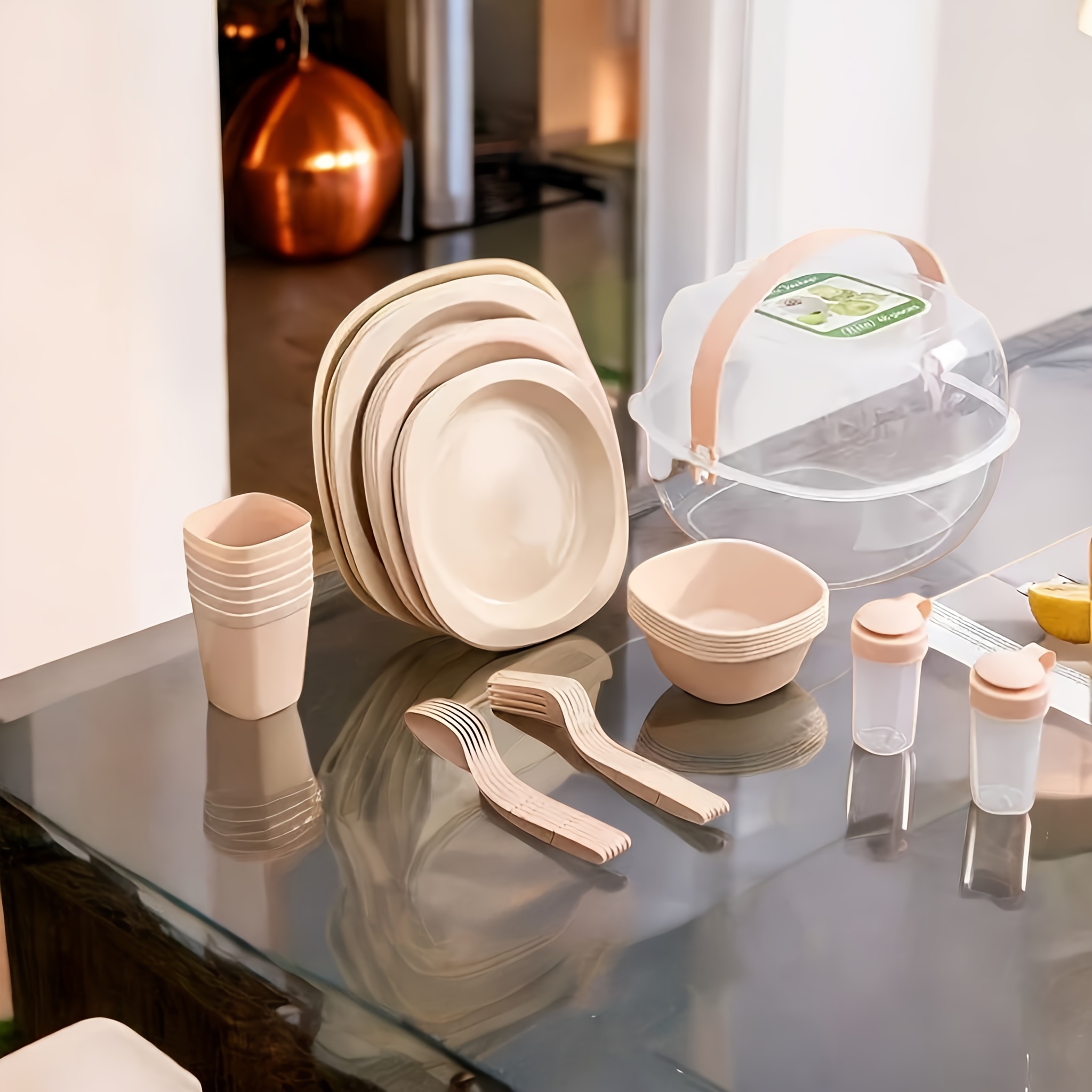 organize the pieces. This compact design ensures that you can take your dinner set on the go without any hassle.