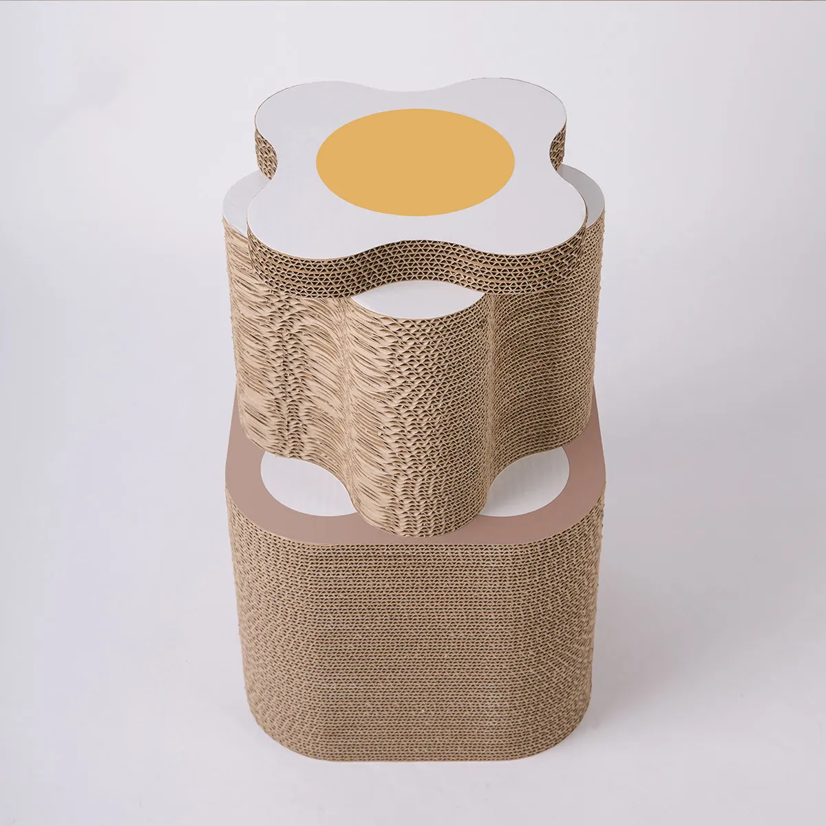 Plumeria combination cat scratching board is composed of three corrugated paper parts,
