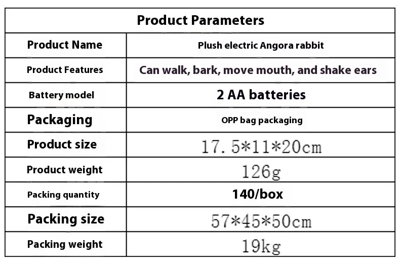 The Plush Electric Walking and Moving Mouth Shaking Ears Long-haired Rabbit Pet Toy is a must-have for children who love interactive pets and realistic play. With its walking motion, shaking ears, and moving mouth, this lifelike bunny provides endless entertainment and encourages imaginative play. Its soft, plush fur makes it a great cuddle buddy, and its battery-powered functionality ensures easy operation for children. Whether it's for a gift or everyday play, this rabbit pet toy will quickly become a favorite companion for any child.