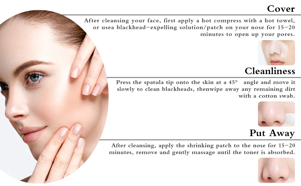 To use the Pore Scraper Face Spatula Blackhead Remover, start by cleansing your face with a gentle cleanser to remove dirt and excess oil. After washing your face, steam it for a few minutes to open up the pores. This will make it easier to extract impurities and blackheads.