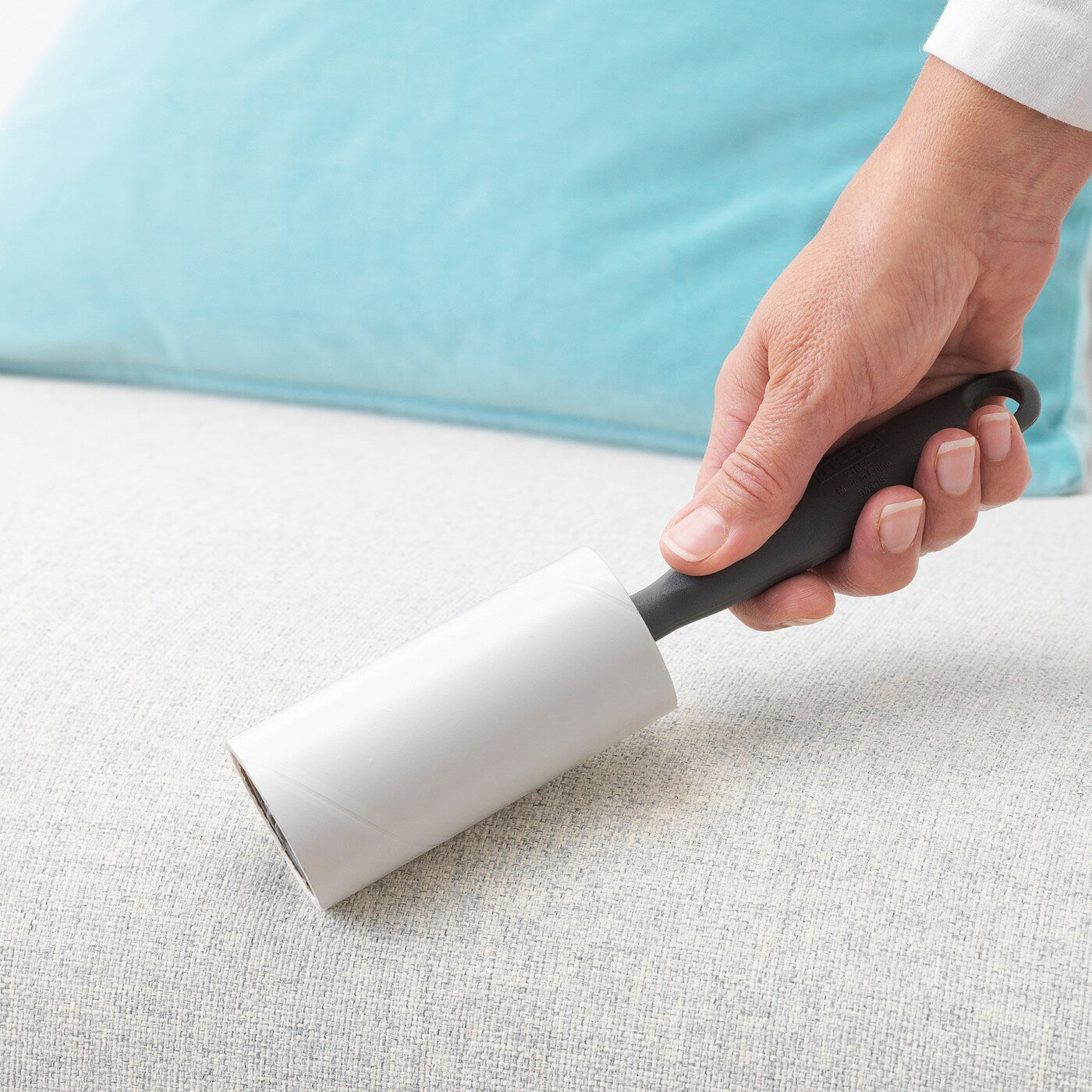Gently roll the sticky surface over the area with lint, pet hair, or debris. Apply slight pressure to ensure effective pickup.