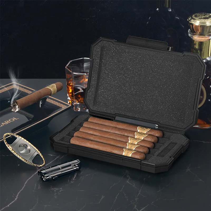 Made with high-quality plastic and a sponge lining, this case offers an unbeatable combination of durability and soft cushioning, ensuring that your cigars are safely secured without the risk of damage during transport. The airtight seal keeps your cigars at the perfect humidity level, which is crucial for preserving the delicate flavors and aromas of high-quality cigars.