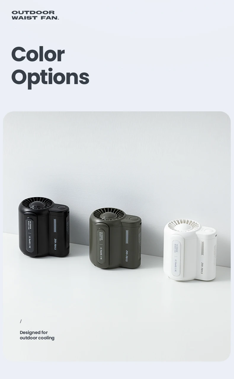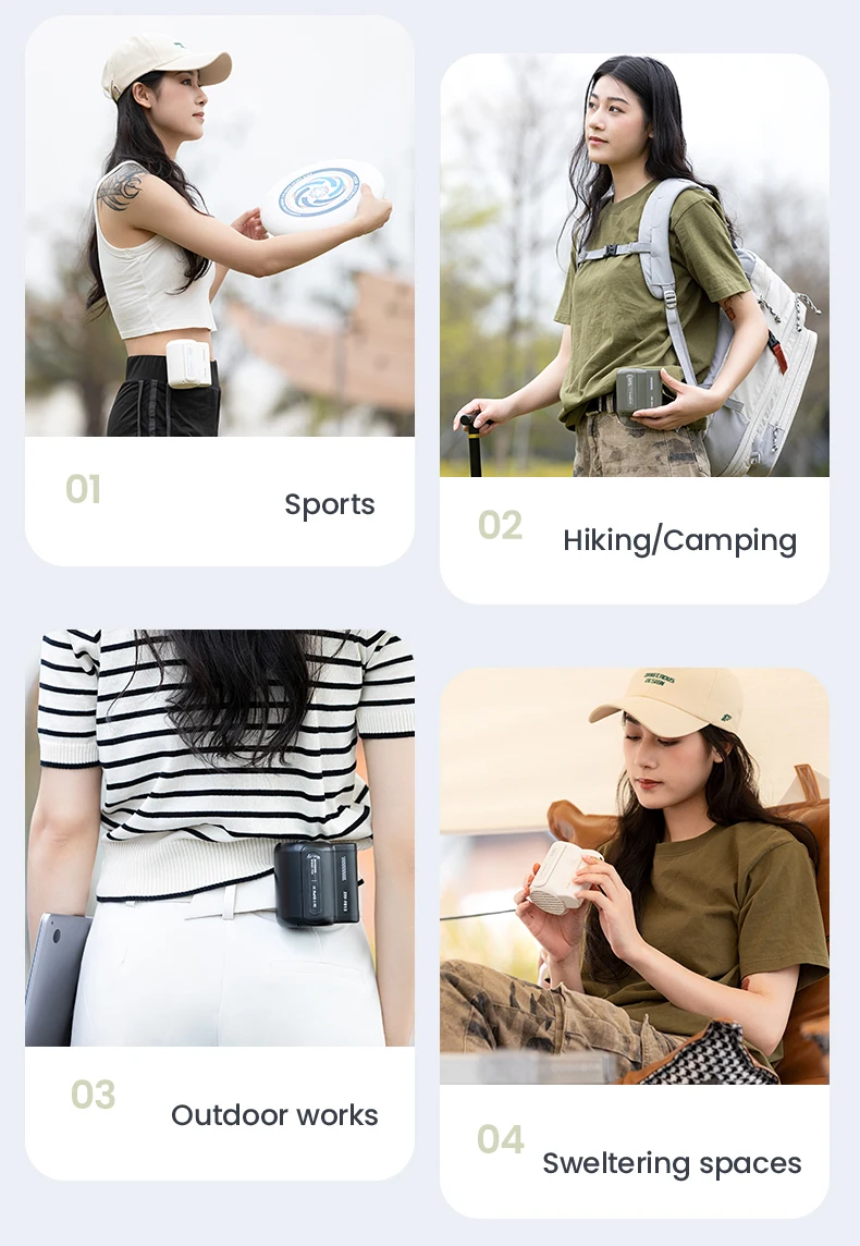 With a 4500mAh rechargeable battery, this mini waist fan offers extended use, ensuring you stay cool for hours on end. The long-lasting battery is perfect for outdoor adventures, commuting, or just staying comfortable throughout the day. You can easily recharge the fan using a USB cable, so you’ll never have to worry about running out of power during your busy day. Whether you're out for a walk, working, or attending outdoor events, the rechargeable battery provides reliable and consistent cooling.