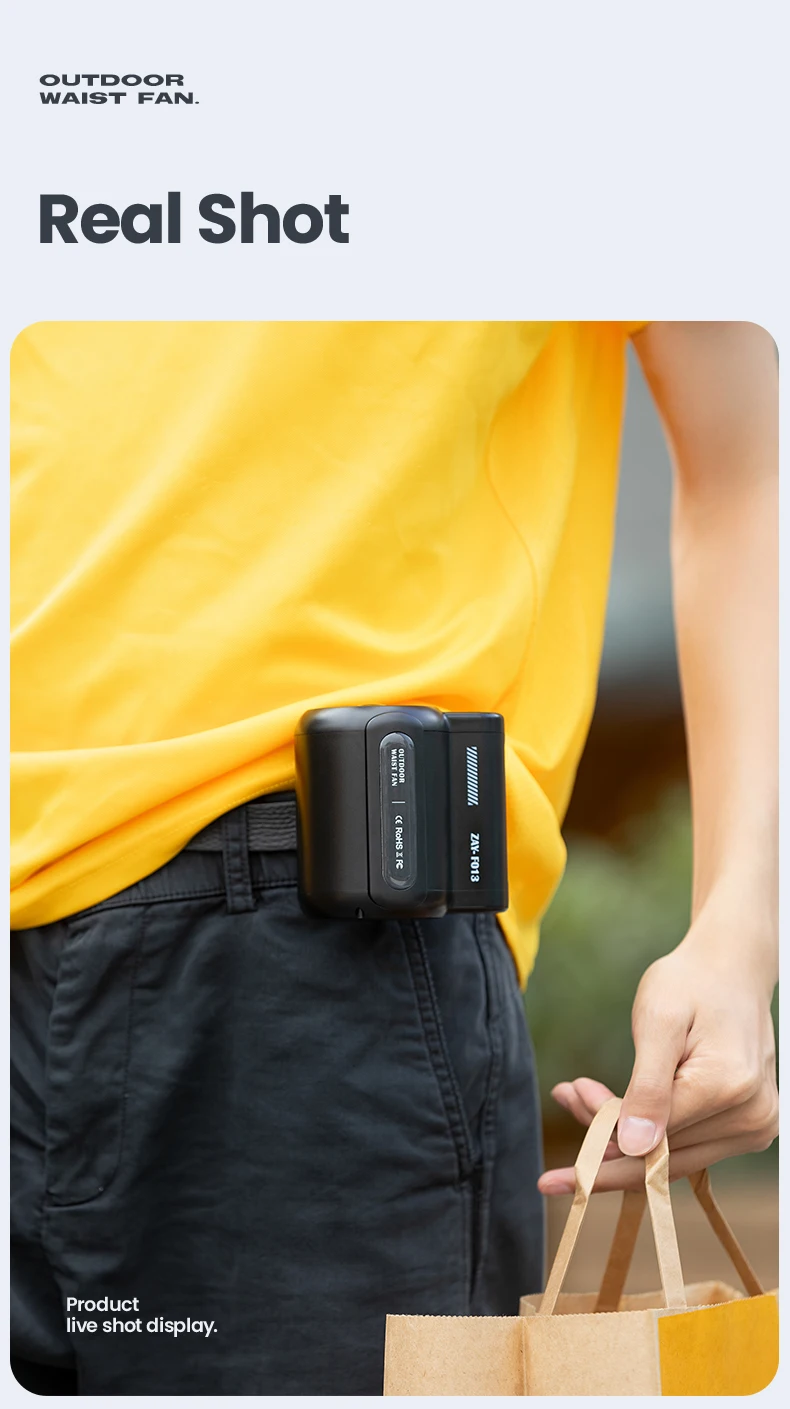With a 4500mAh rechargeable battery, this mini waist fan offers extended use, ensuring you stay cool for hours on end. The long-lasting battery is perfect for outdoor adventures, commuting, or just staying comfortable throughout the day. You can easily recharge the fan using a USB cable, so you’ll never have to worry about running out of power during your busy day. Whether you're out for a walk, working, or attending outdoor events, the rechargeable battery provides reliable and consistent cooling.