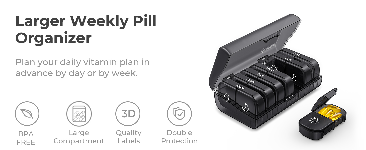 - Safe for Use: Made of BPA-free materials that are safe for humans, you can safely store your daily pills in this daily vitamin organizer. Tips: Please put your pills in a dry environment