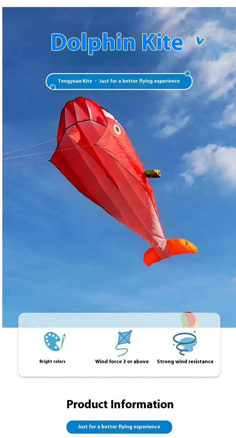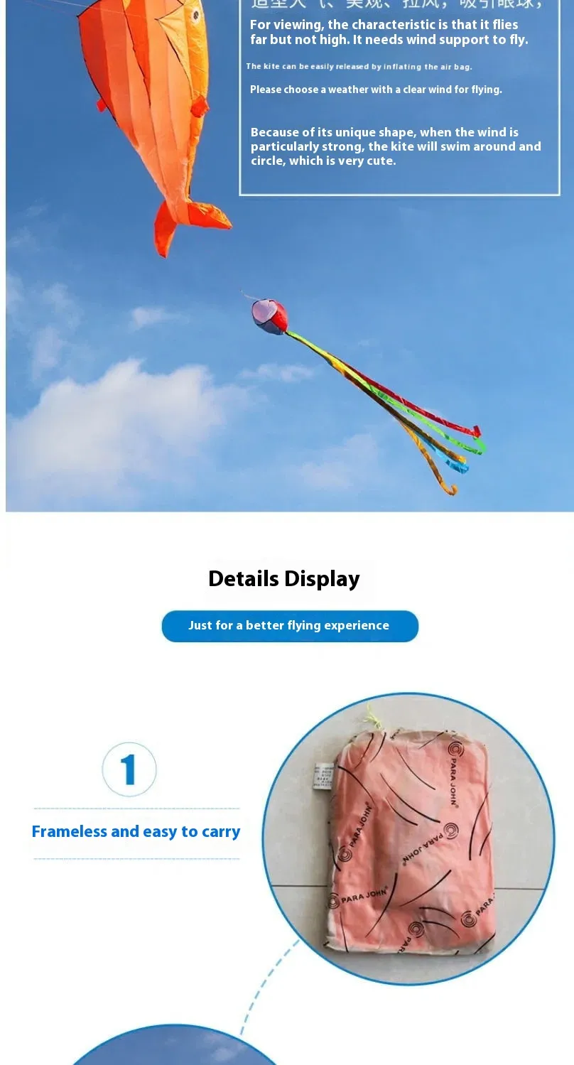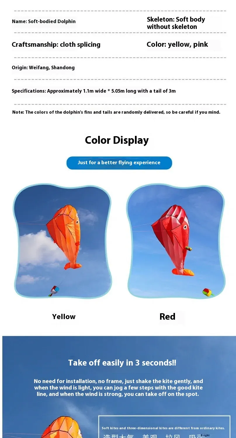 Bright and colorful dolphin and whale patterns make the kite visually appealing and fun for children.