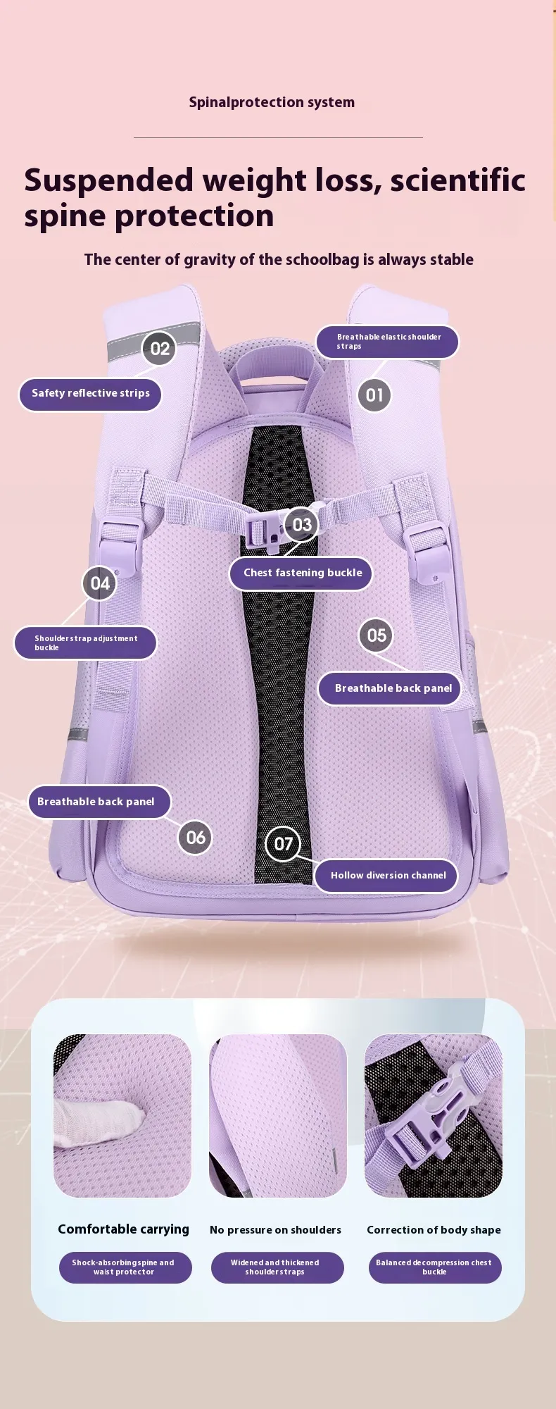 Function: wear resistance, burden reduction, spine protection