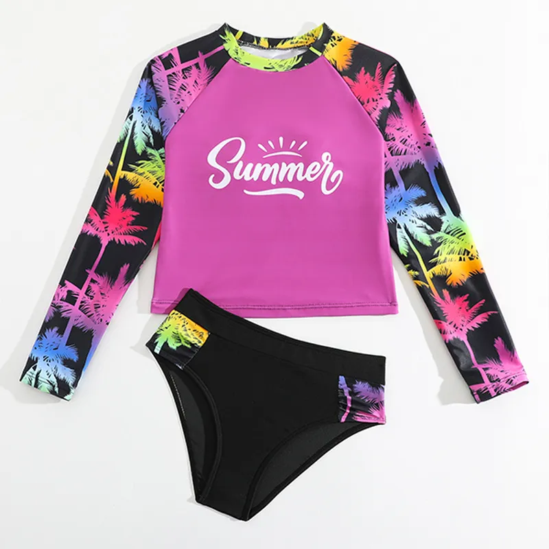 Printed Long-sleeved Conservative Children's Swimsuit – Stylish and Comfortable Sun Protection Swimwear