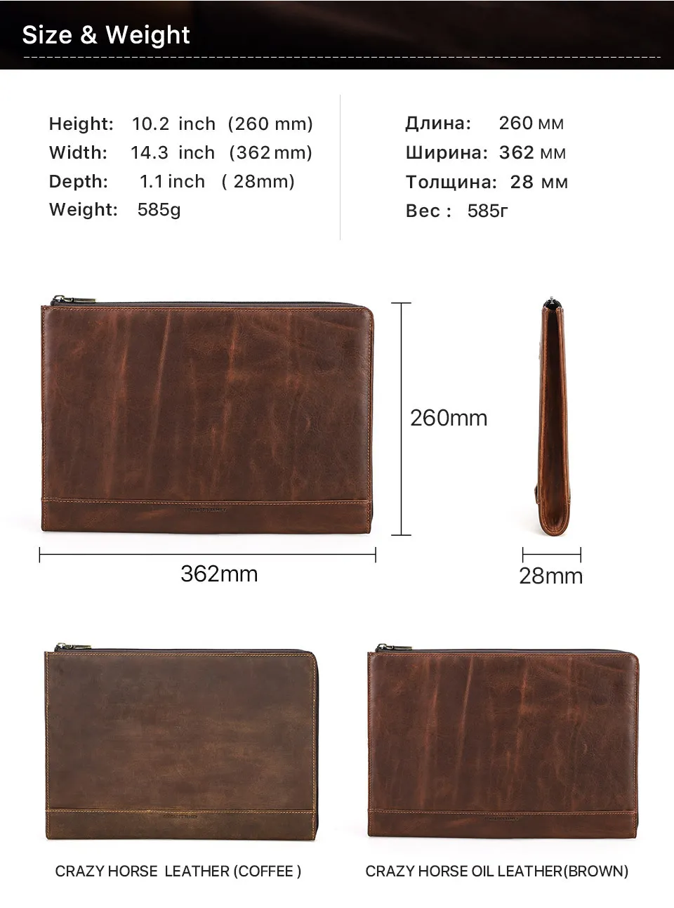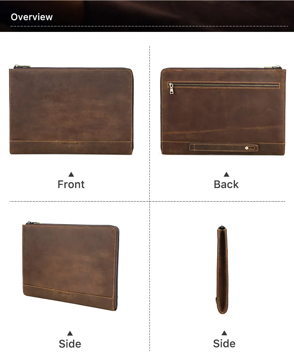 The Protective Case Crazy Horse Oil Leather Zipper Laptop Bag is available in multiple sizes, ensuring a perfect fit for various laptop models. Whether you have a 13-inch, 15-inch, or 17-inch laptop, this bag offers a customized fit to ensure optimal protection and comfort.