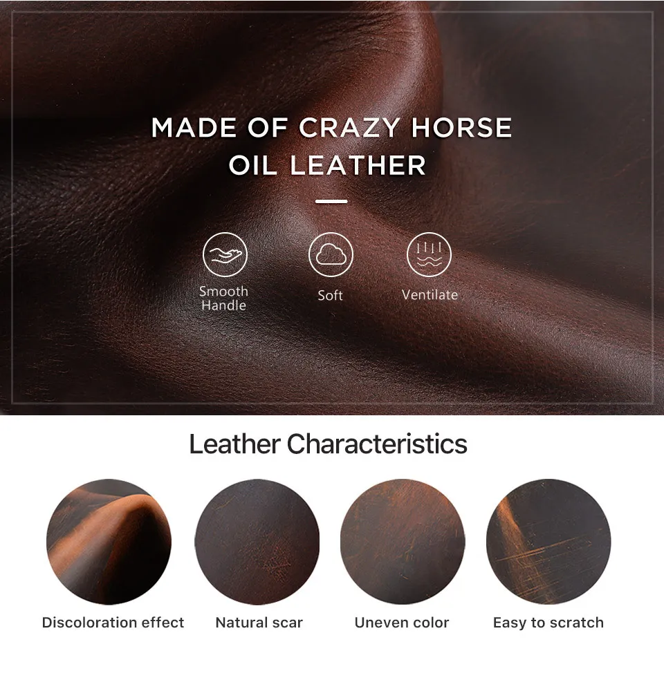 Durable Crazy Horse Oil Leather: Provides long-lasting protection while developing a unique vintage