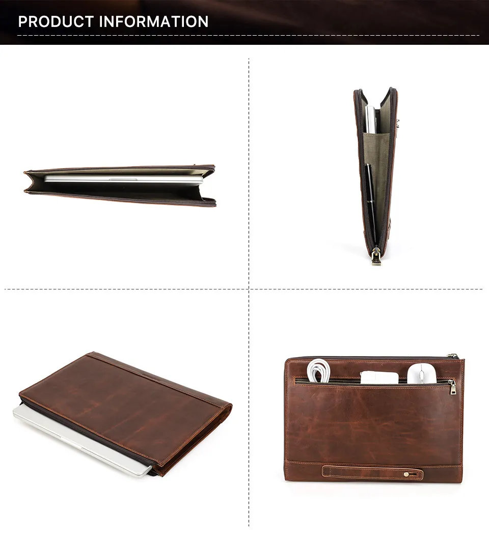 The Protective Case Crazy Horse Oil Leather Zipper Laptop Bag offers the perfect combination of elegance, protection, and durability. Its premium leather construction provides unmatched strength, while the soft interior ensures that your laptop is well-cushioned from everyday bumps. Whether you need it for daily commuting, traveling, or as a stylish accessory for meetings, this bag offers all the versatility and protection you need.