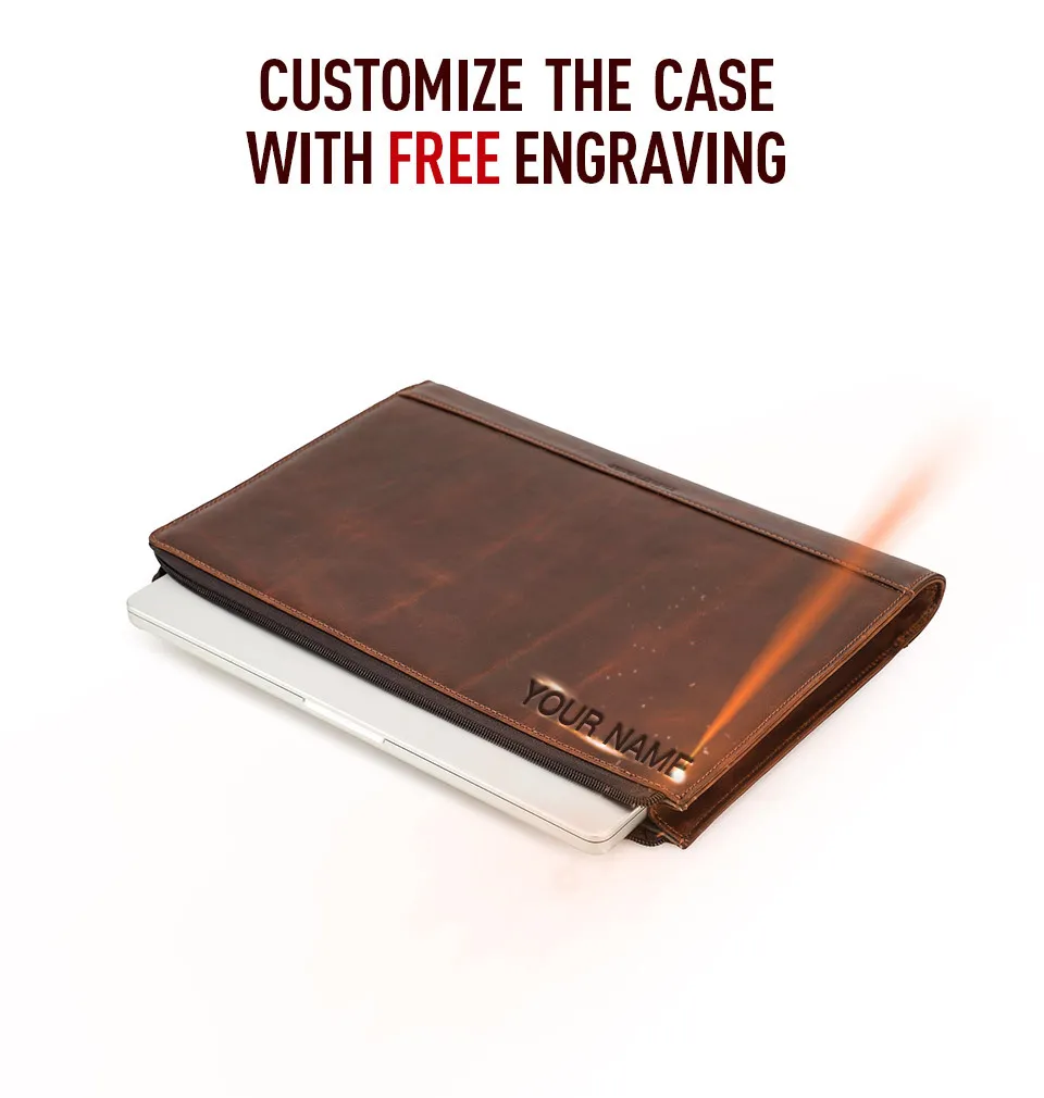 Made from Crazy Horse oil leather, this laptop bag offers a luxurious look and feel. The leather’s rich texture and unique finish improve with age, creating a vintage patina that adds character over time. The leather is not only visually stunning but also highly durable, providing long-lasting protection for your laptop against scratches, bumps, and everyday wear.