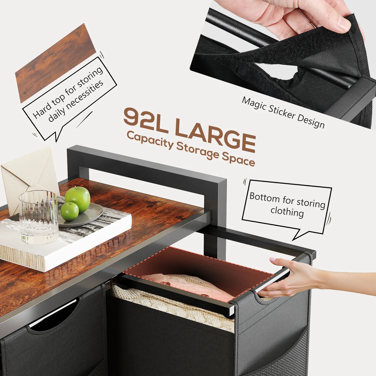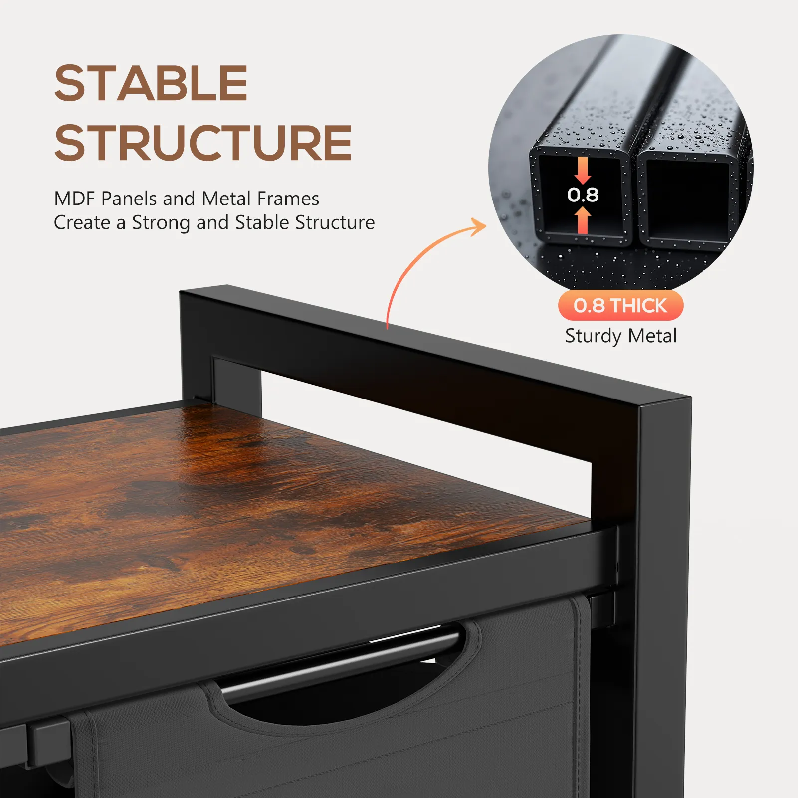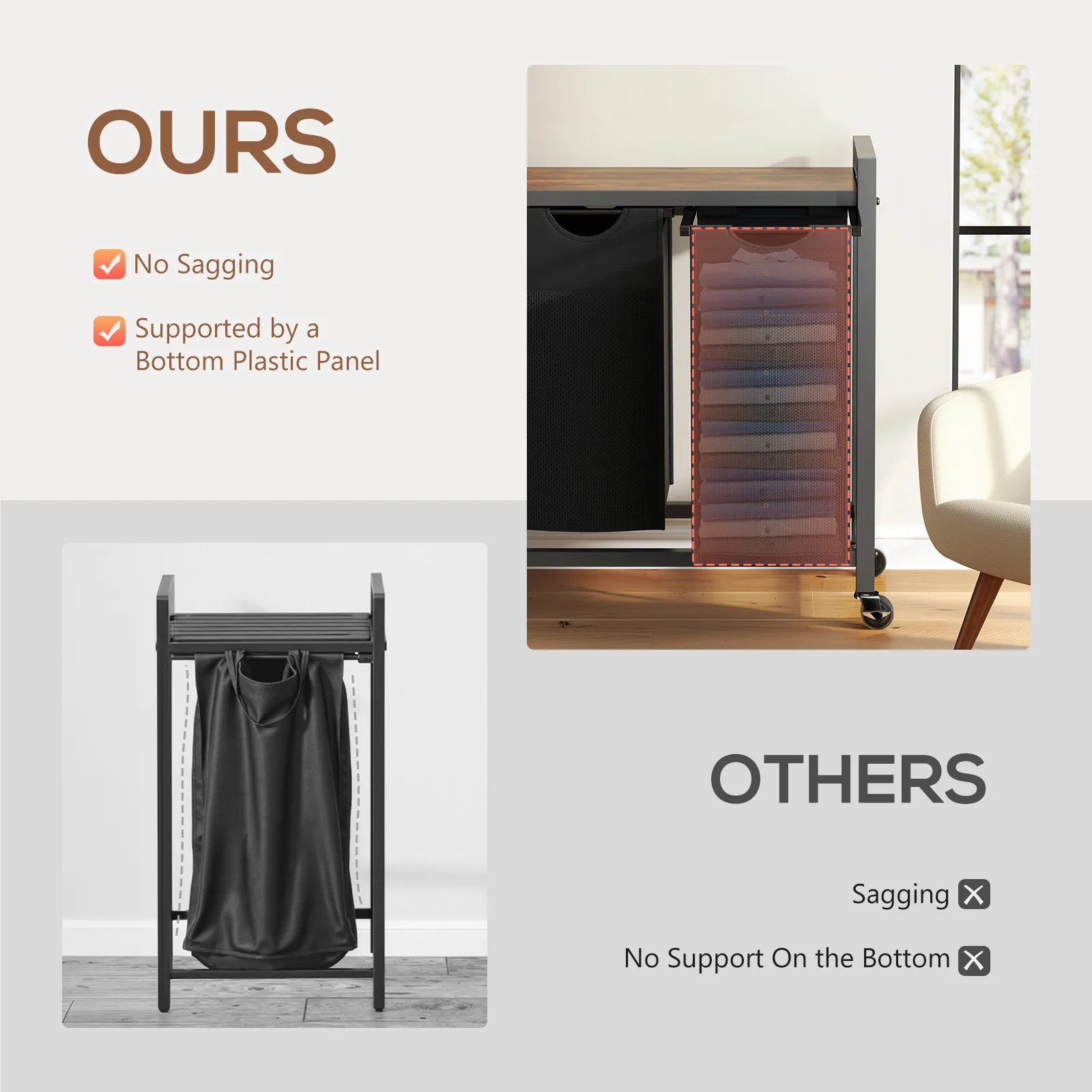 - 【Sturdy & Durable】This laundry organizer is made of 0.8 inch steel tube frame and MDF for reliable strength and stability. The laundry bag is made of waterproof Oxford cloth, which not only prevents clothes from getting wet, but also ensures durability. Mesh pockets are included on each dirty clothes hamper, providing you with extra storage space. The top shelf can hold up to 55 pounds for more reliable support.