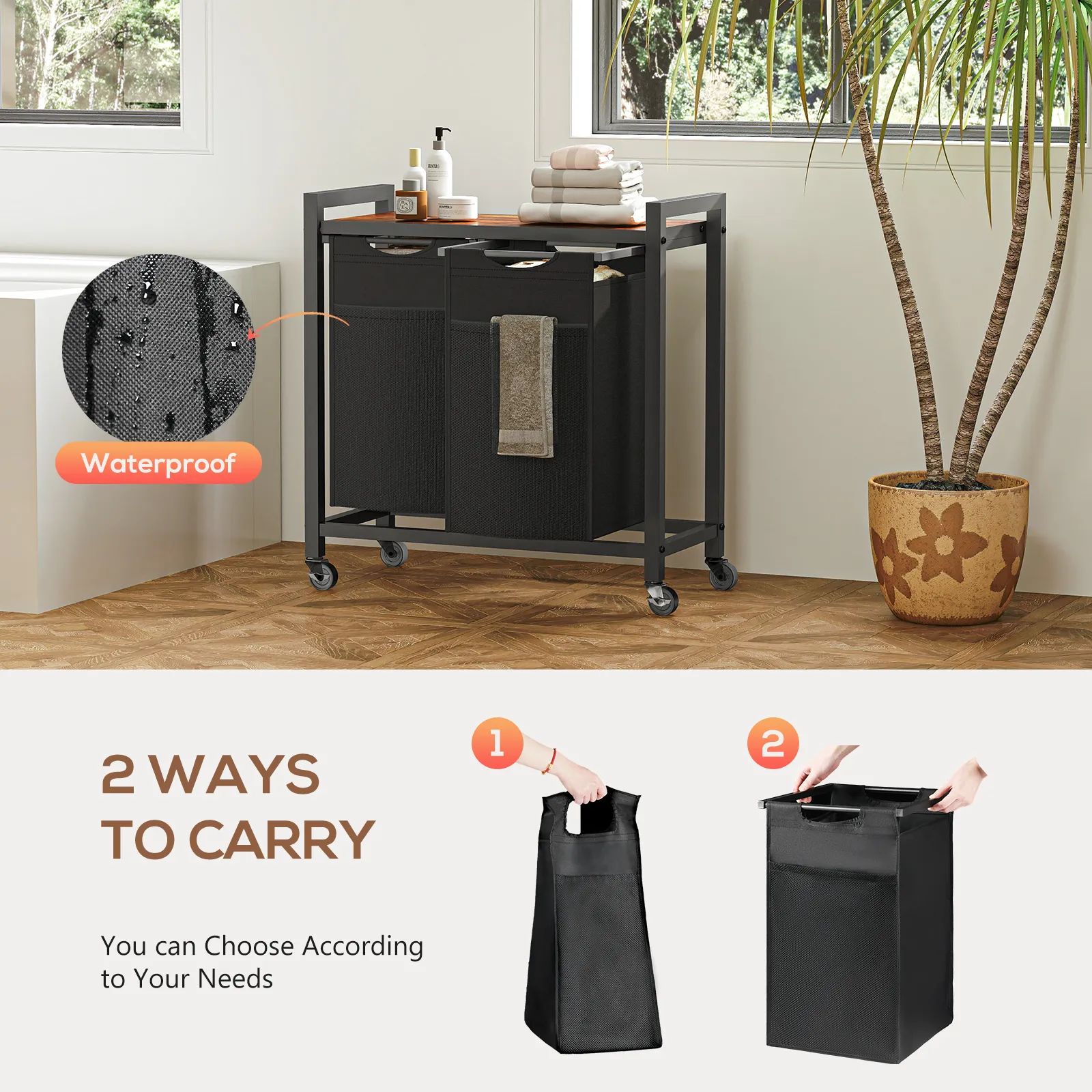 - 【Sturdy & Durable】This laundry organizer is made of 0.8 inch steel tube frame and MDF for reliable strength and stability. The laundry bag is made of waterproof Oxford cloth, which not only prevents clothes from getting wet, but also ensures durability. Mesh pockets are included on each dirty clothes hamper, providing you with extra storage space. The top shelf can hold up to 55 pounds for more reliable support.