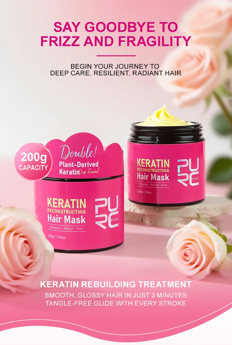 PURC Double Keratin Hair Mask - 3-Minute Deep Repair for Damaged, Frizzy Hair, and Improved Texture