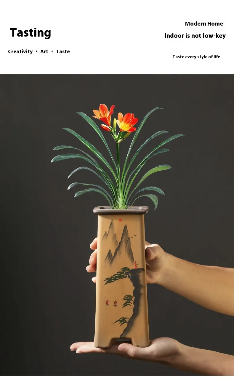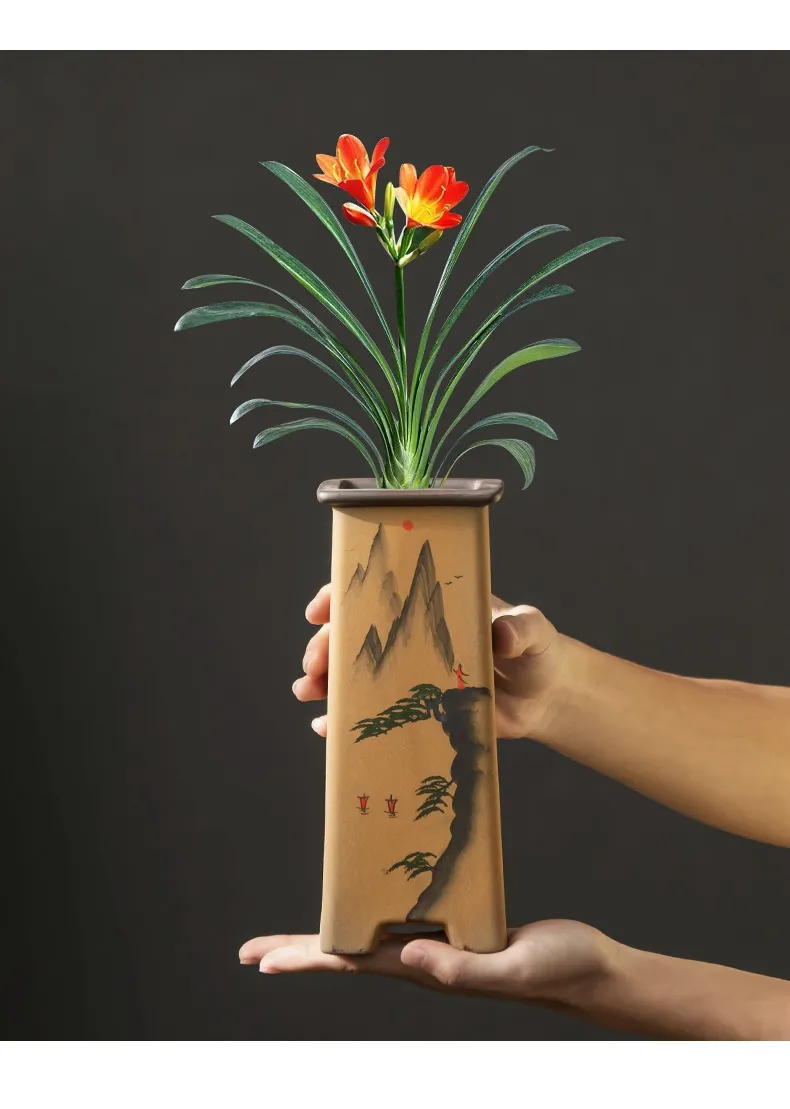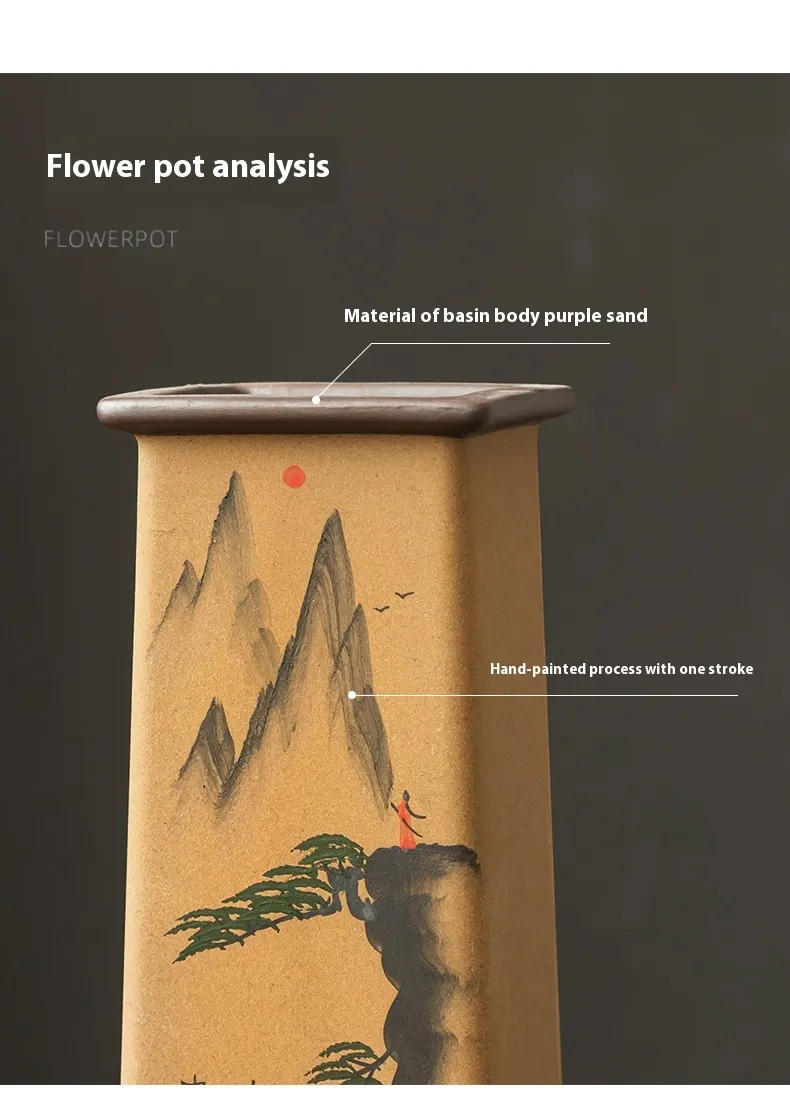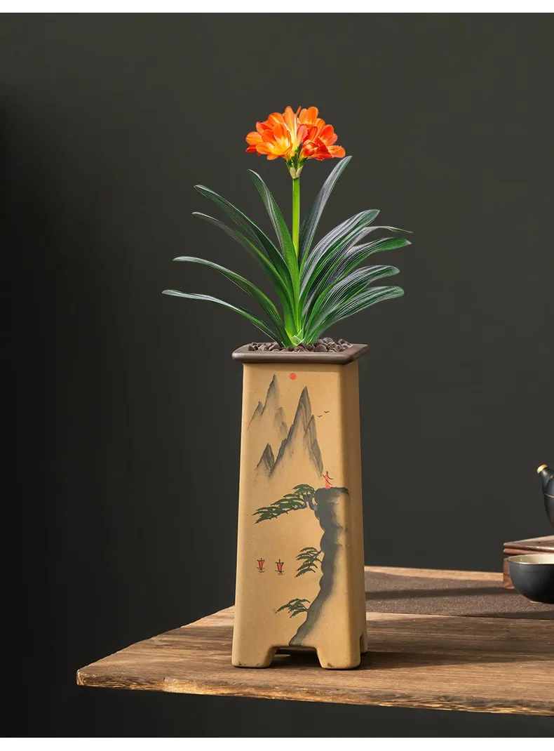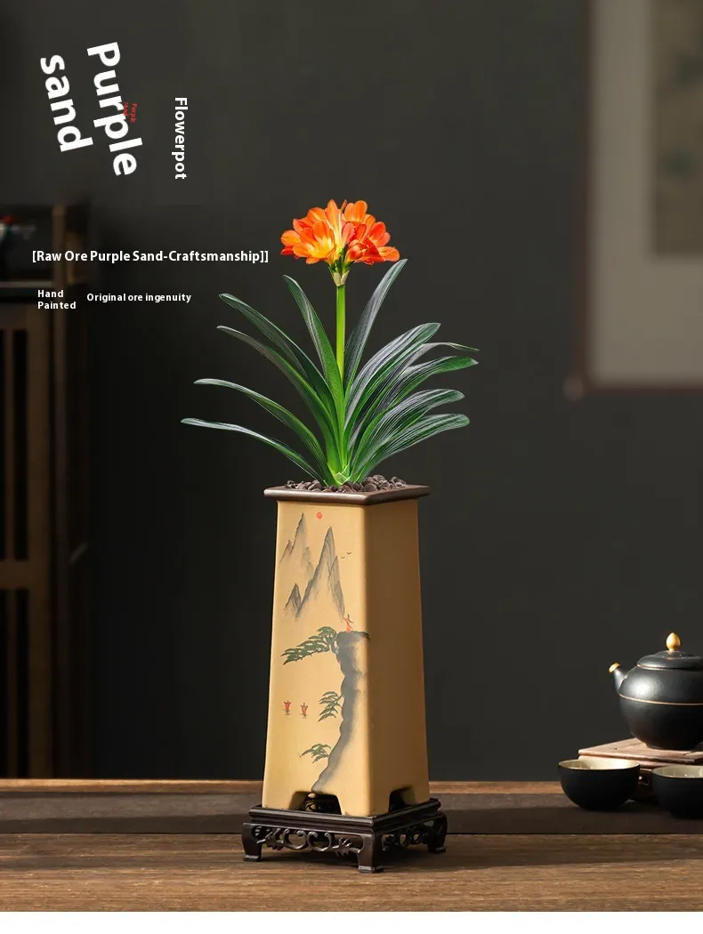 Purple Sand Retro Clivia Special Bonsai High Leg Plant Pot Home Indoor Desktop Decoration With Support