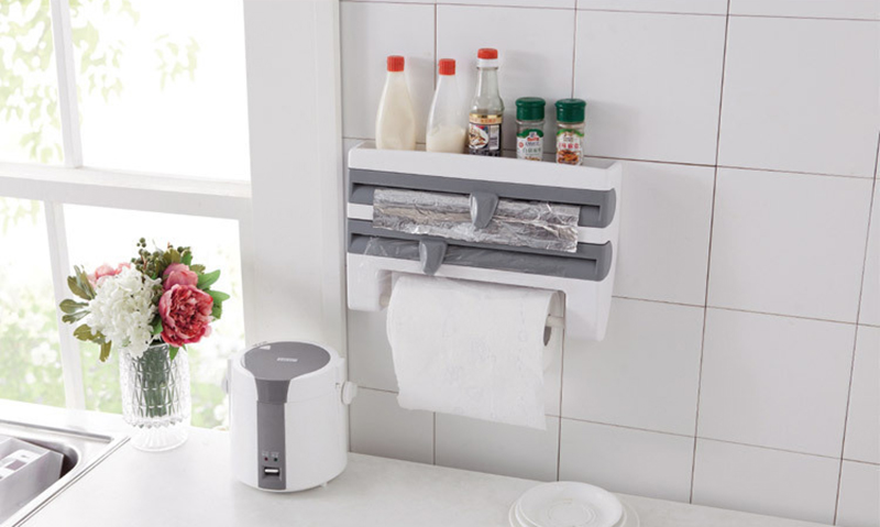 and cleaning process. This innovative dispenser neatly houses all your essential kitchen wraps and papers in one compact, stylish unit.