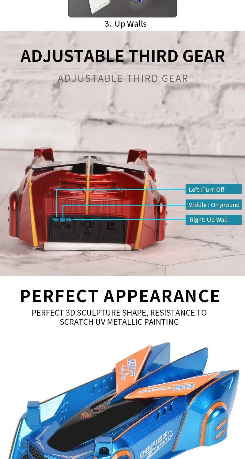 🎁 R C Car Rechargeable 360°Rotating Laser Guided Wall Climber For Floor