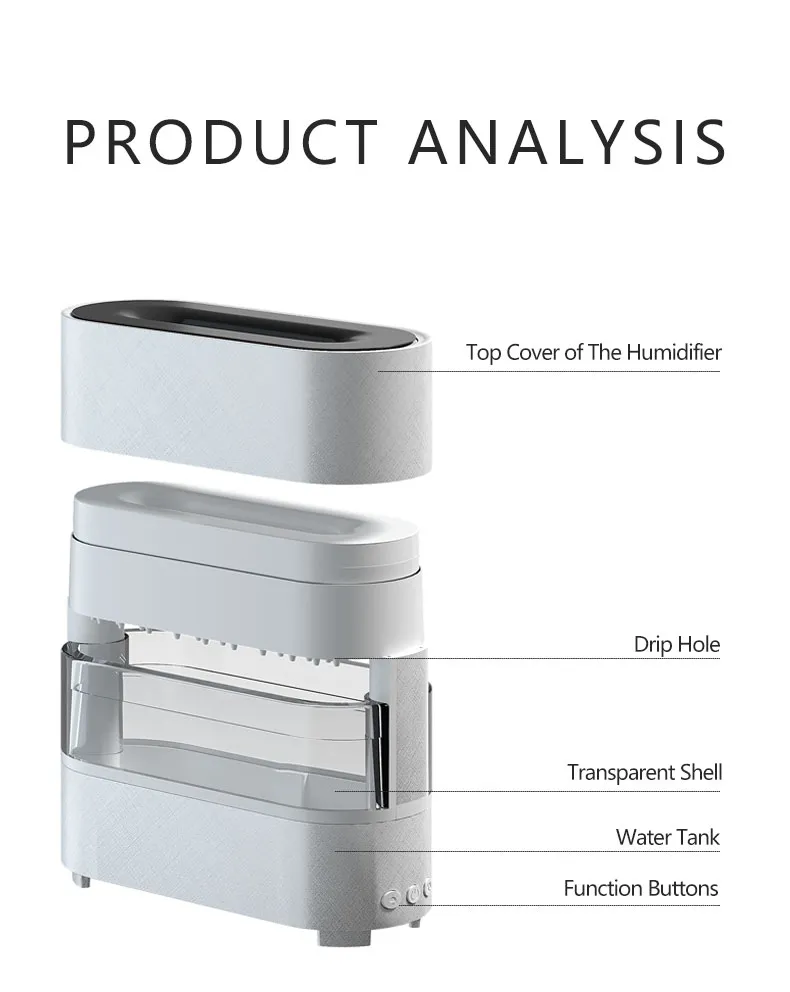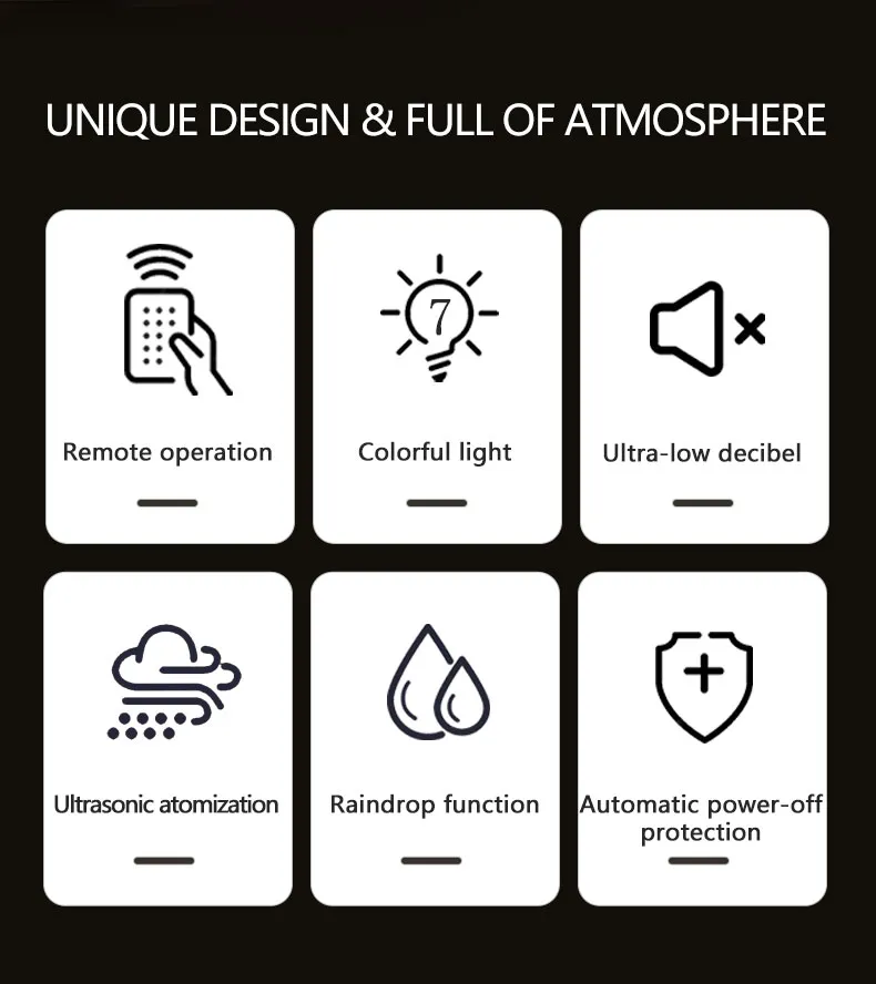 humidifier+essential oil diffuser+flame effect: 3 -in -1 humidifier+essential oil diffuser+flame effect. The white noise of rain can help