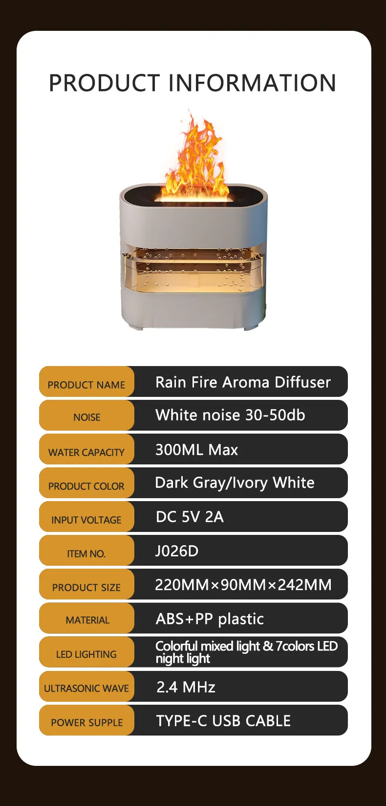 Rain Cloud Fire Humidifier Water Drip Novedades 2024 Rain Water Diffuser Fire Flame Humidifier Aroma Diffuser with Remote controlOverview:The