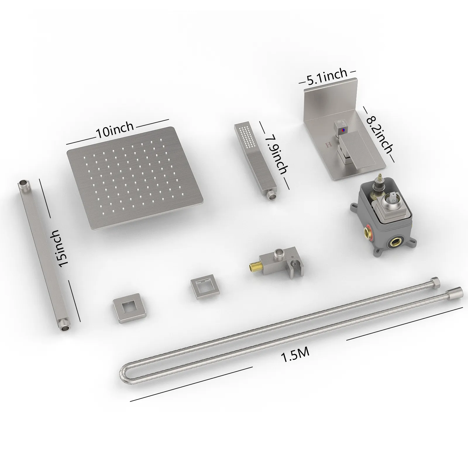 10 Inch Square Shower Head: The large square shower head provides a wide, even flow of water, simulating the feeling of a