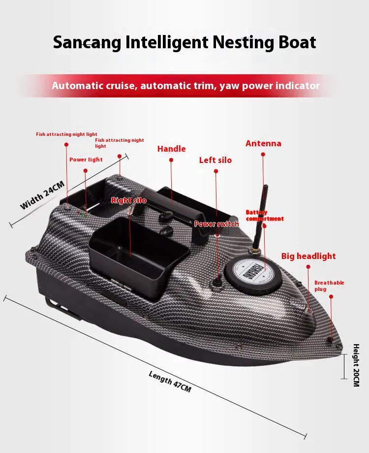The RC fishing boat is an innovative and exciting tool that combines the thrill of fishing with the convenience of remote control. Designed for fishing enthusiasts who want to explore new ways of fishing, this remote-controlled boat offers a unique experience by allowing users to operate the boat from a distance while engaging in the process of casting and retrieving bait. Whether you're an avid fisherman or a hobbyist looking to elevate your fishing game, the RC fishing boat is the perfect addition to your collection of fishing gear.