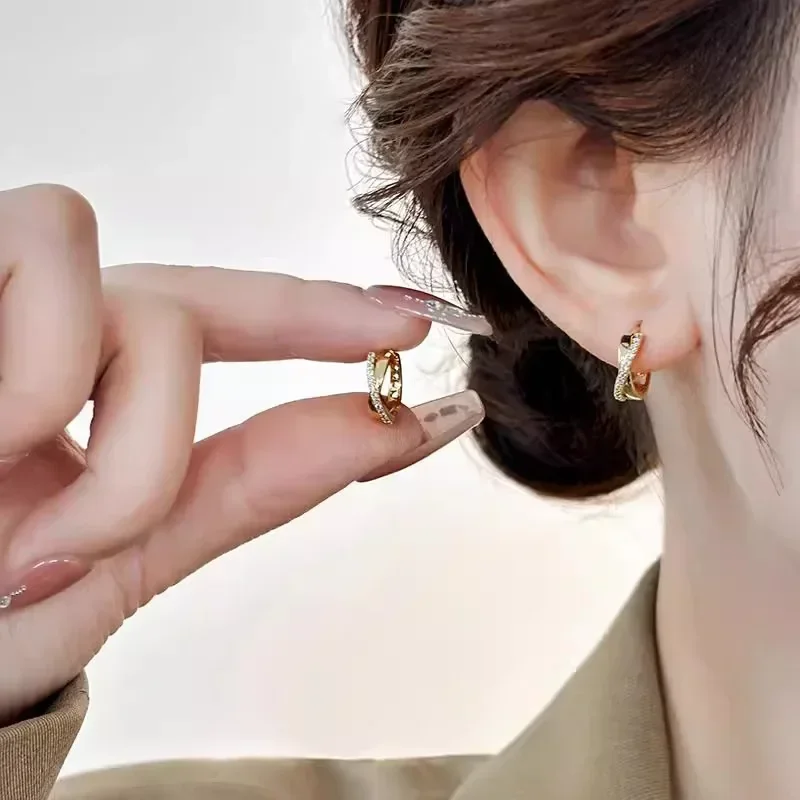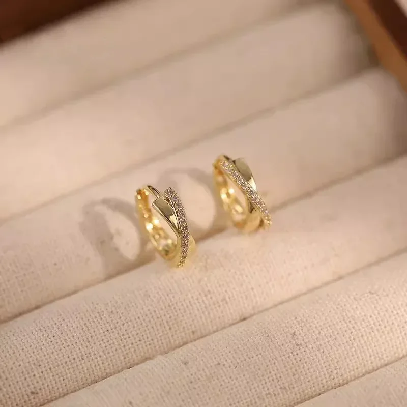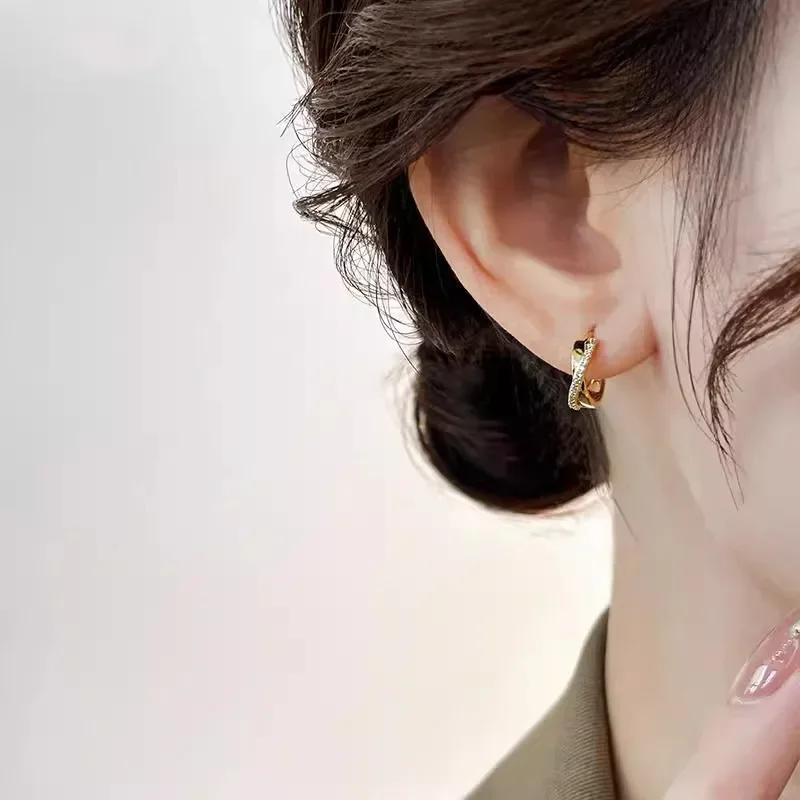 The earrings feature zircon stones that add a subtle sparkle and shimmer. Zircon is a natural gemstone known for its brilliance and clarity, and the stones used in these earrings enhance their luxurious feel. The zircon stones are carefully set to ensure a secure fit, adding an extra touch of elegance to the minimalist design.