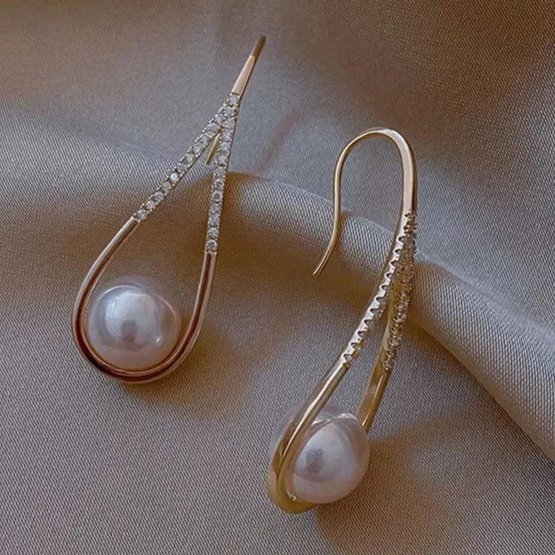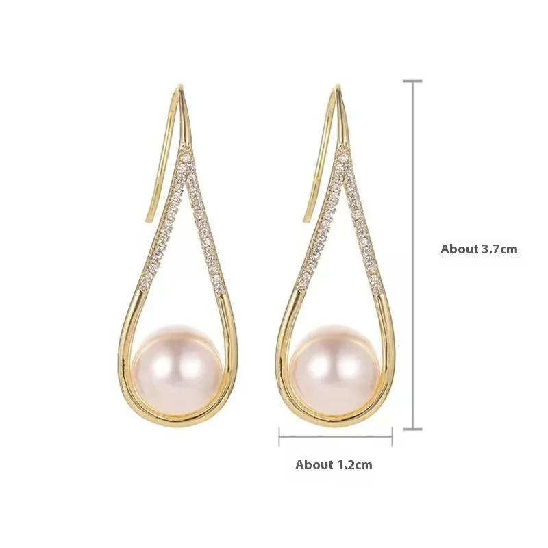 Real Gold Plating Rhinestone Pearl Ear Hook Fashion